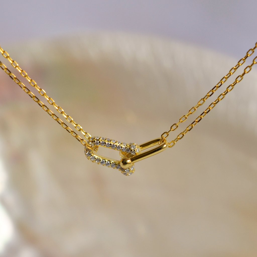 Pozlátený strieborný náramok s elegantným uzlom a zirkónmi 13085.1