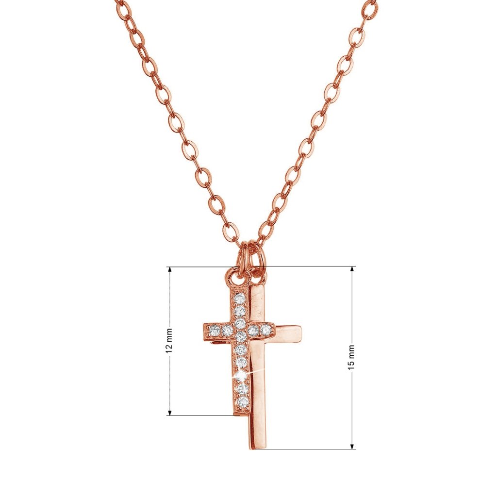 Pozlátený strieborný Rose Gold náhrdelník dva malé krížiky a biele zirkóny 12059.1 crystal