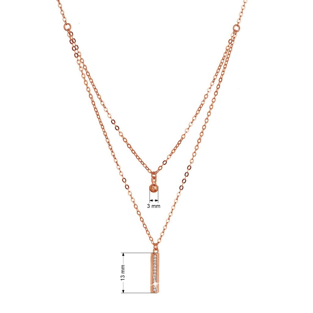 Pozlátený strieborný Rose Gold náhrdelník gulička a úzky obdĺžnik so zirkónmi biely 12057.1 crystal
