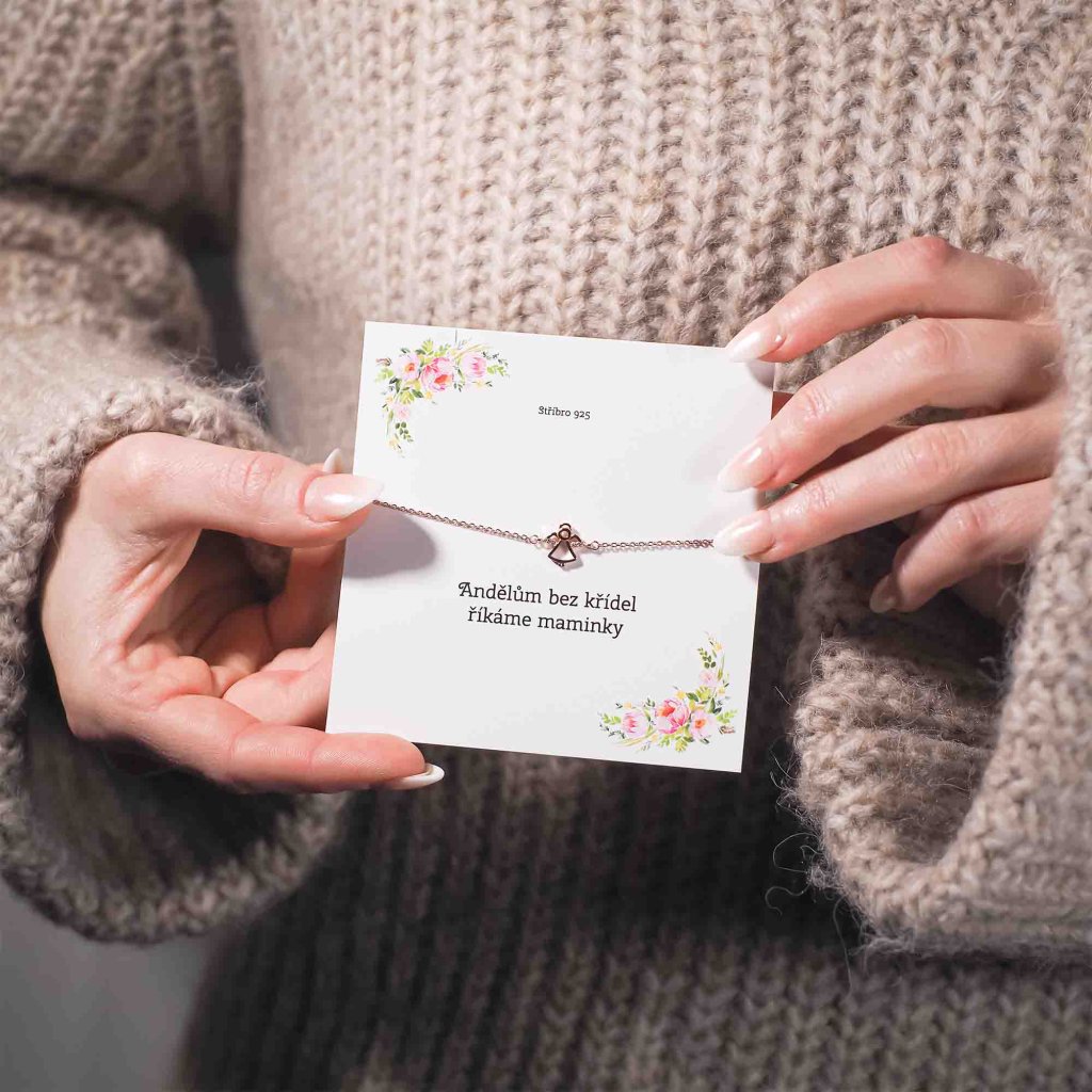 Pozlátený strieborný Rose Gold náramok anjelik so zirkónmi 13028.1 crystal
