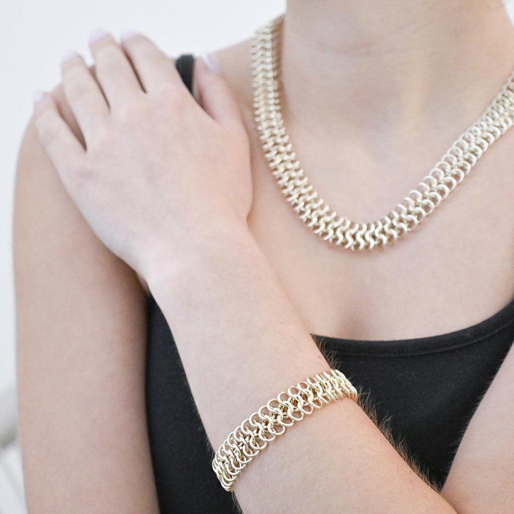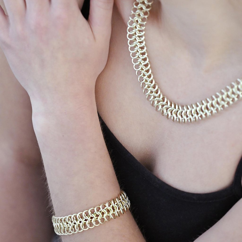 Precízne prepletený náhrdelník z pozláteného striebra očarí predovšetkým svojím hustým vzorom . Vďaka sieťovinovej štruktúre pôsobí luxusne a zároveň jemne. Dĺžka je ideálna na nosenie ku krku – skvele padne na blúzku aj šaty s výstrihom.