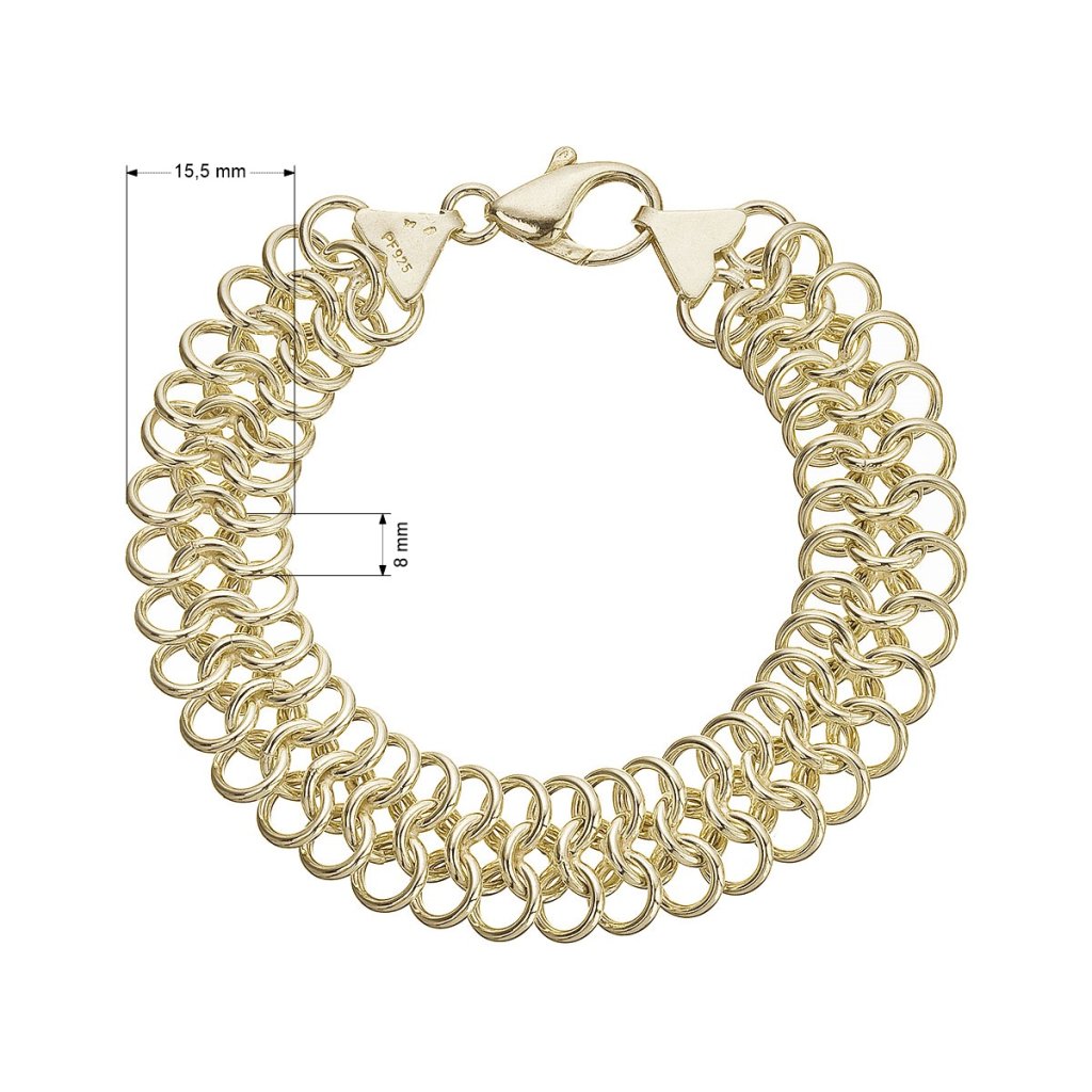 Pozlátený strieborný náramok je z pozláteného striebra o rýdzosti 925/1000. Neobsahuje žiadne množstvo niklu , je vhodným darčekom aj pre alergikov. Hrúbka náramku je 15,5 mm a dĺžka 21 cm.