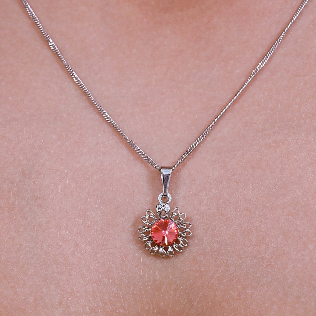 Hravé, veselé a plné pozitívne energie sú prívesky v tvare kvetov.Prívesok je zdobený okrúhlym svetločerveným Swarovski kryštálom, ktorý je vložený doprostred kvety. Šperk vyrábame úplne bez obsahu niklu, je vhodným doplnkom aj pre alergikov.