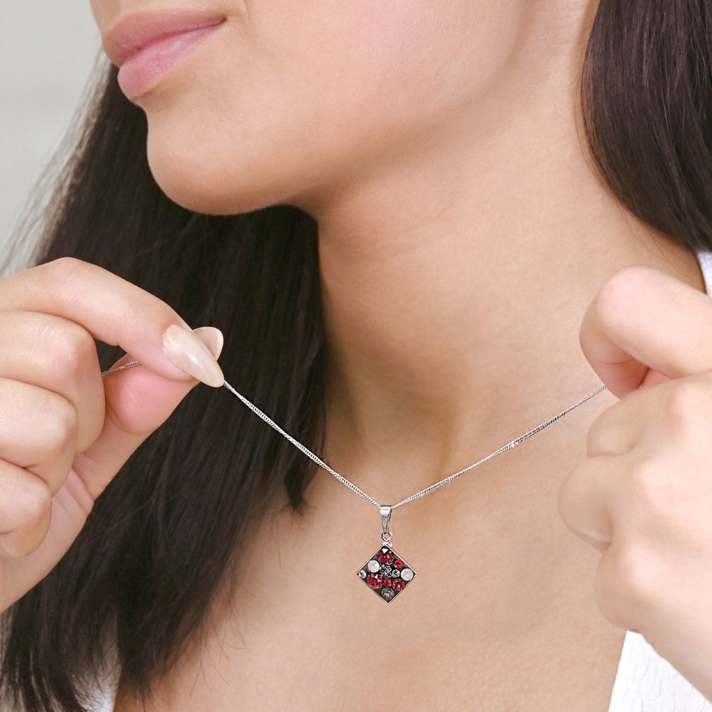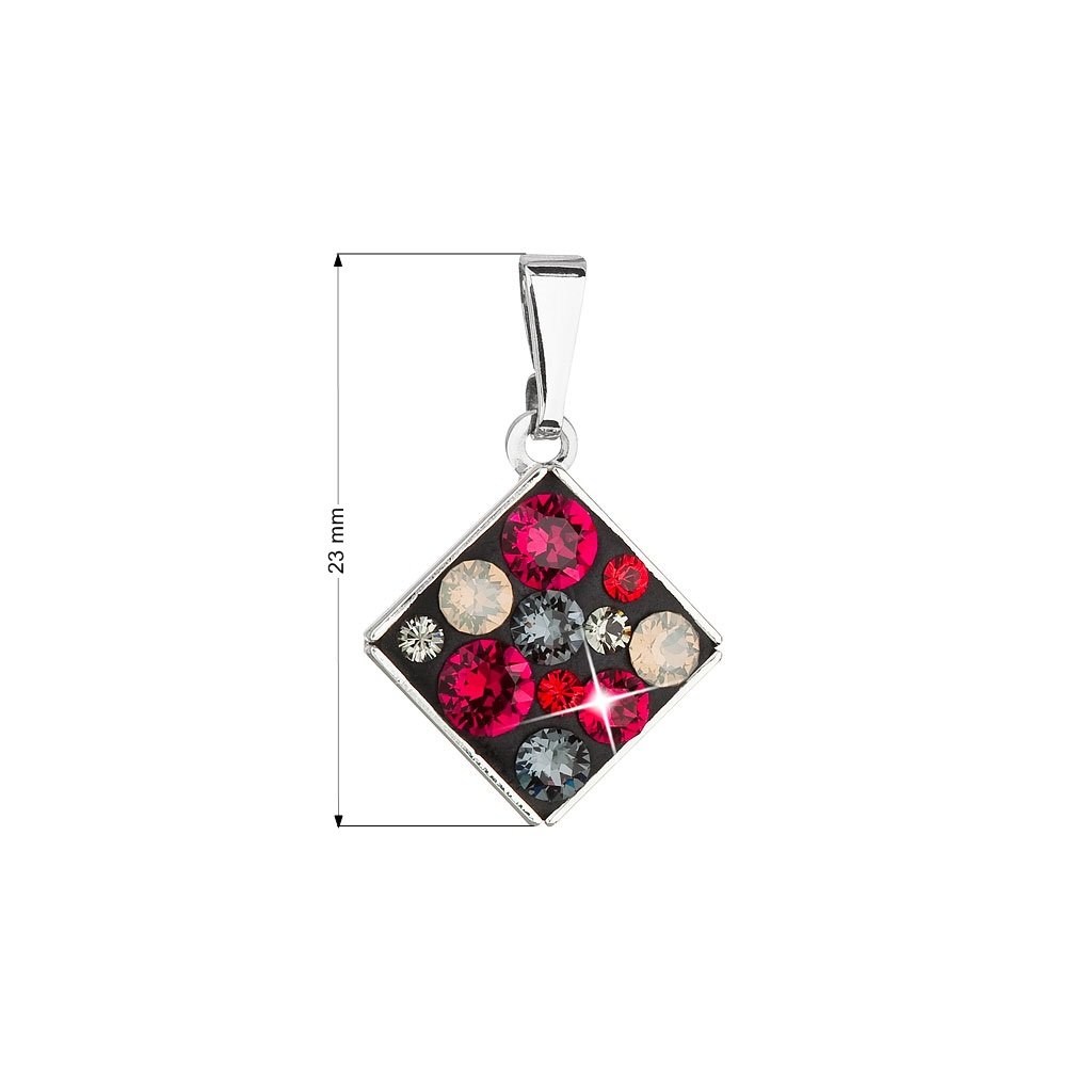 Kosoštvorcový prívesok zdobí mix červeno-čiernych kryštálov Swarovski . Bižutérny prívesok 54020.3 je zavesený na lesklom pútku. Stačí len vybrať správnu retiazku.