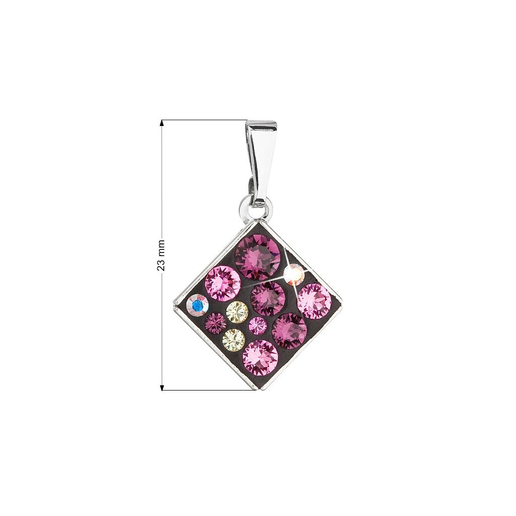Kosoštvorcový prívesok zdobí mix fialových kryštálov Swarovski . Bižutérny prívesok 54020.3 je zavesený na lesklom pútku. Stačí len vybrať správnu retiazku.