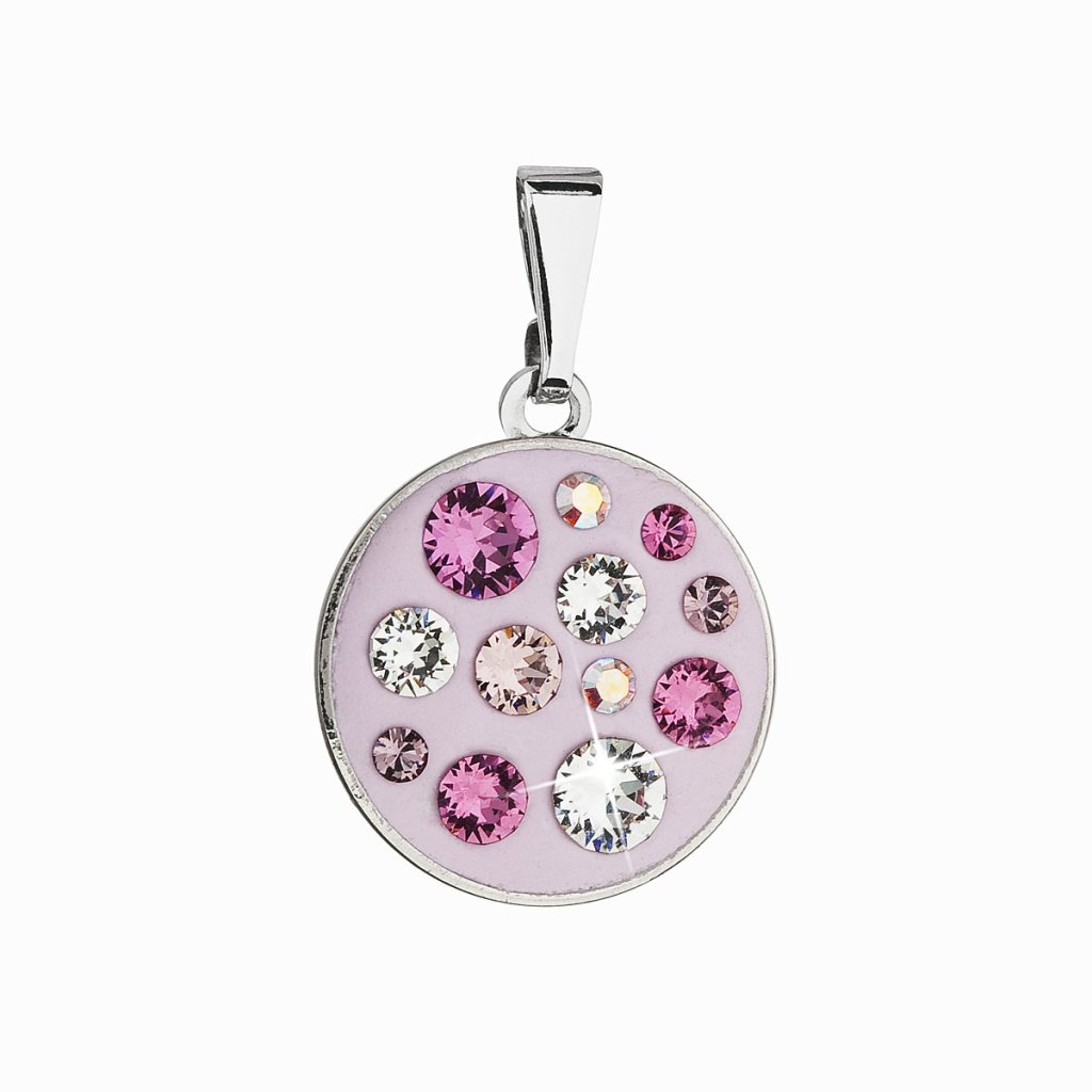 Okrúhly rybníček, v ktorom sa odráža celá nočná obloha plná hviezd. Jemné ružové kryštály Swarovski sa oslnivo blyští.Prívesok bižutérny 54024.3 neobsahuje žiadny nikel, a tak ho môžu bez obáv nosiť aj alergici.