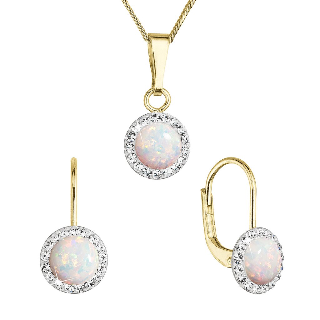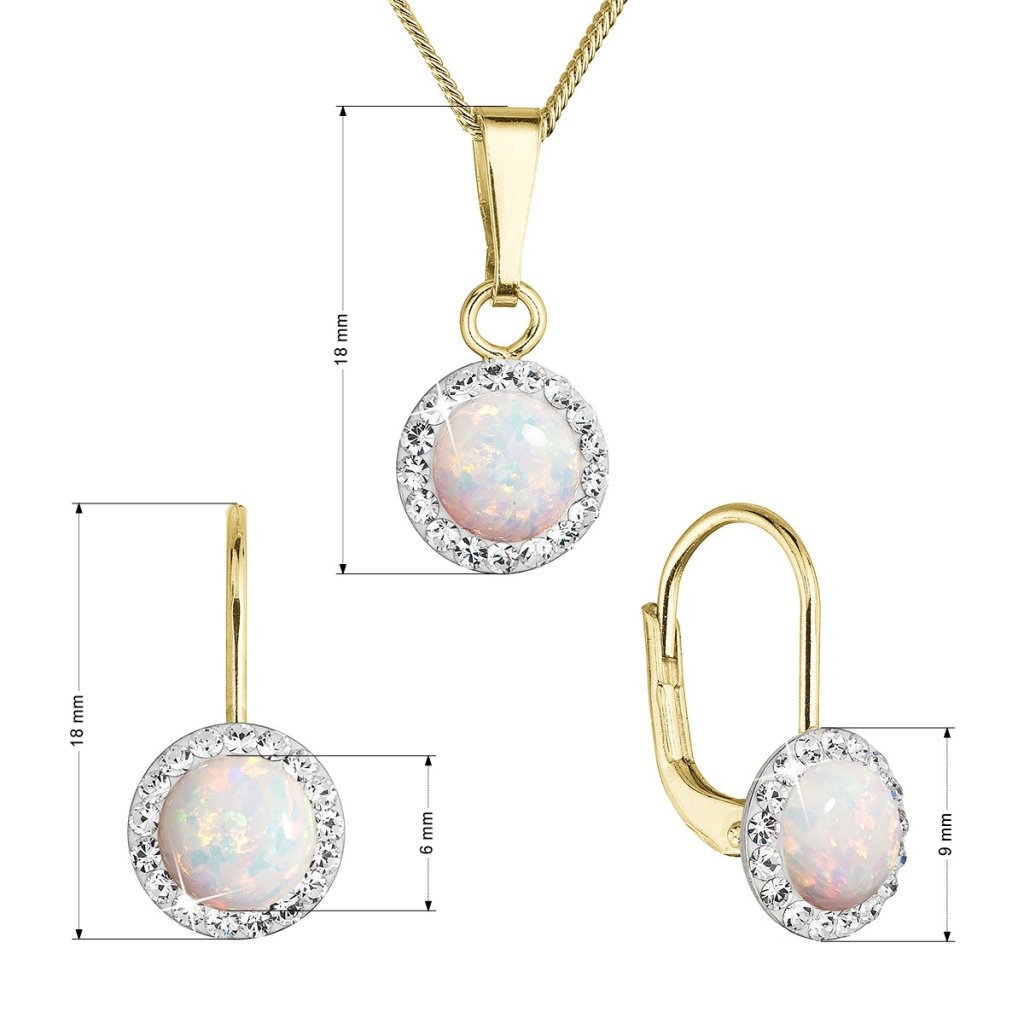 Sada pozlátených šperkov so syntetickým opálom a kryštálmi Preciosa biele okrúhle 39160.1 white