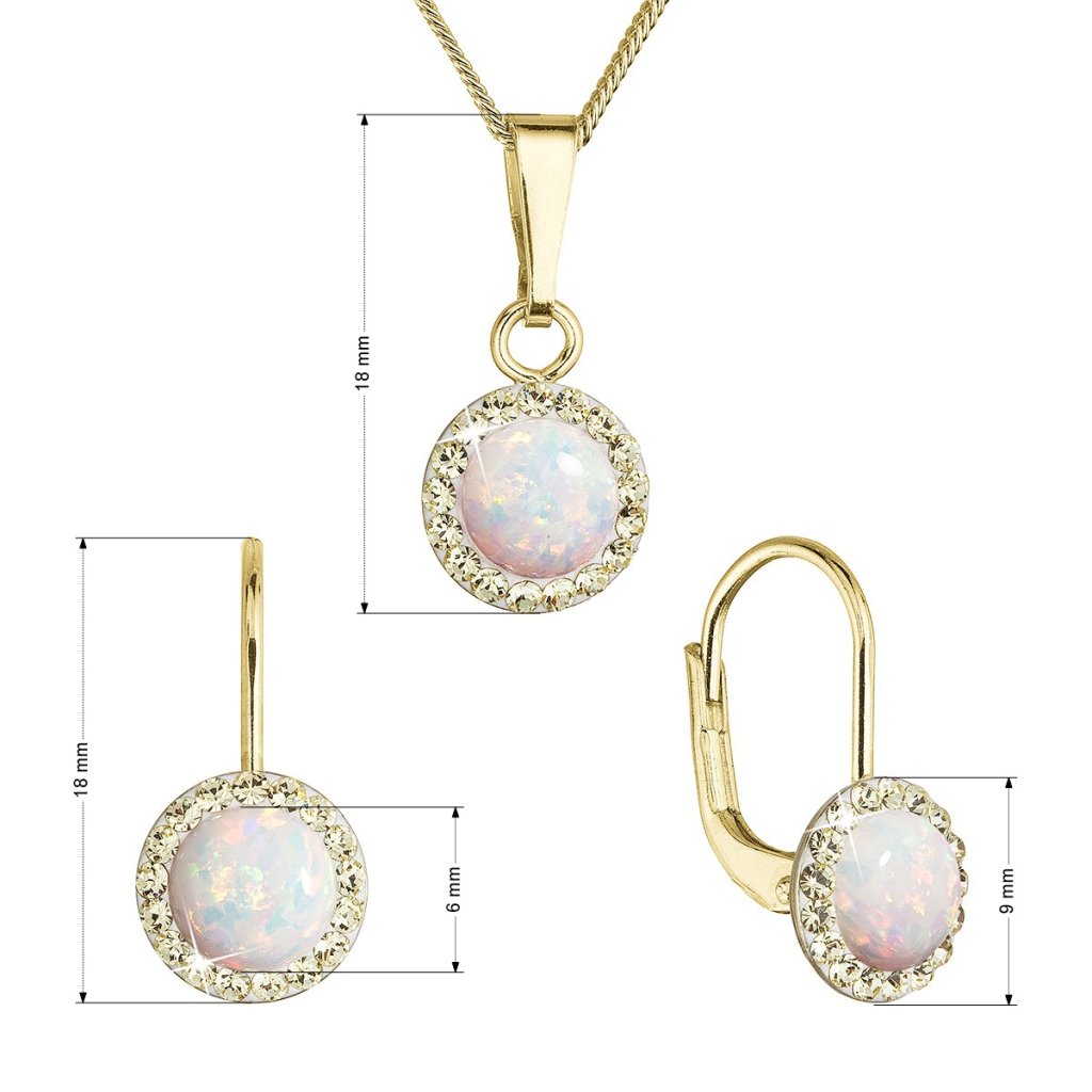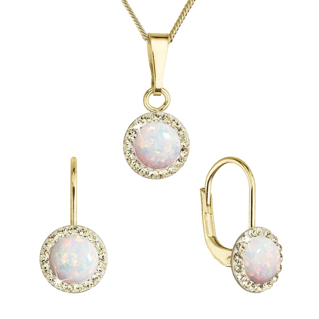 Sada pozlátených šperkov so syntetickým opálom a kryštálmi Preciosa zlaté okrúhle 39160.3 white/jonquil