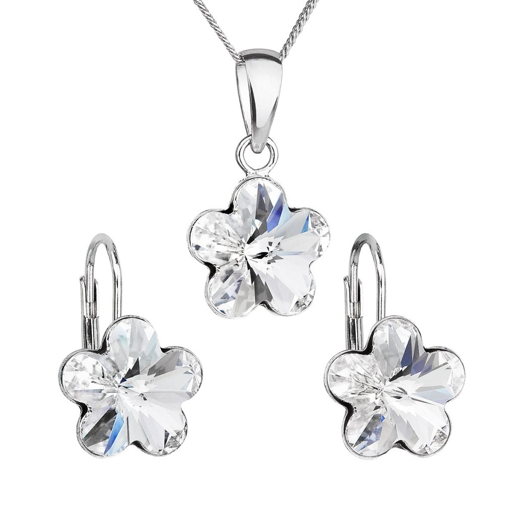 Sada šperkov s kryštálmi Swarovski náušnice, retiazka a prívesok biela kytička 39143.1