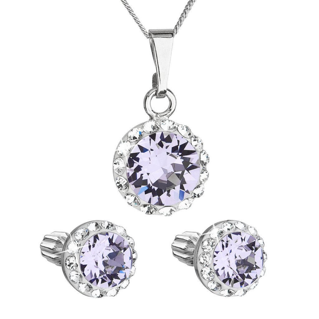 Sada šperkov s kryštálmi Swarovski náušnice, retiazka a prívesok fialové okrúhle 39352.3 violet