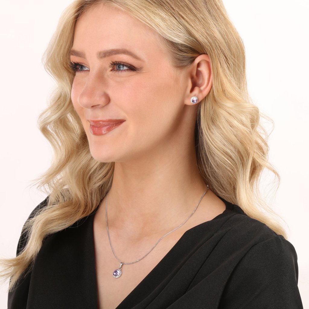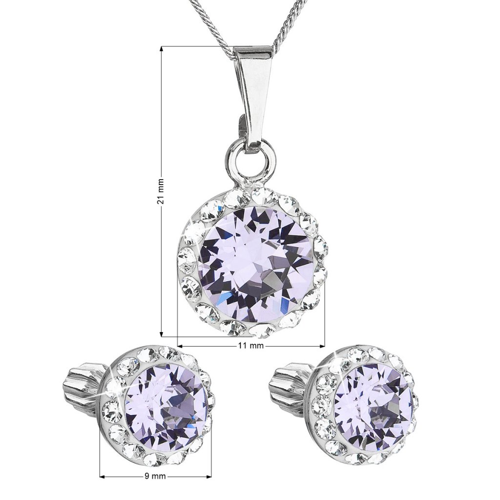 Parametre sady šperkov s kryštálmi Swarovski náušnice, retiazka a prívesok fialové okrúhle 39352.3 violet