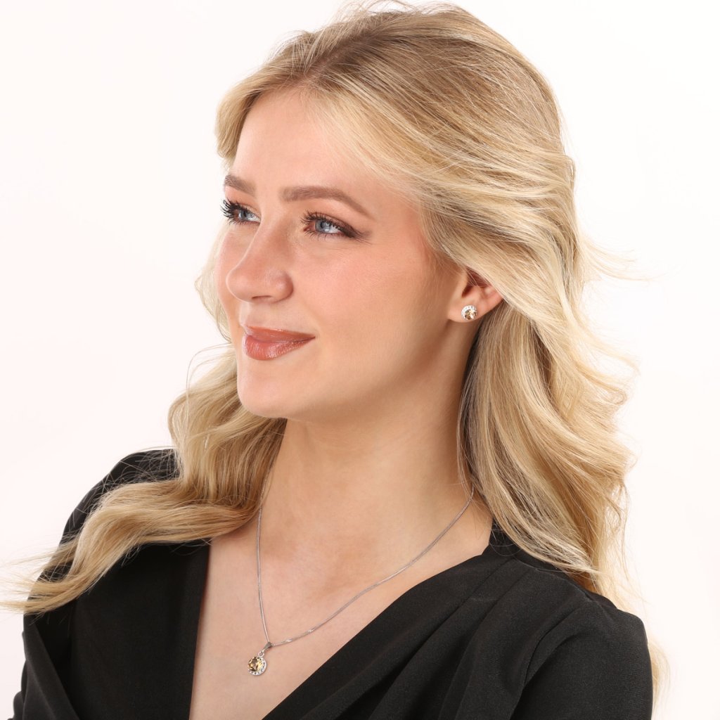 Parametre sady šperkov s kryštálmi Swarovski náušnice, retiazka a prívesok hnedé oranžové okrúhle 39352.3 light colorado topaz