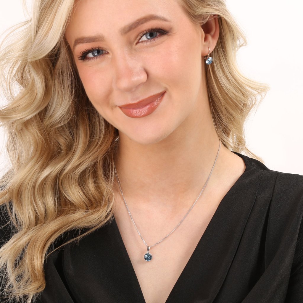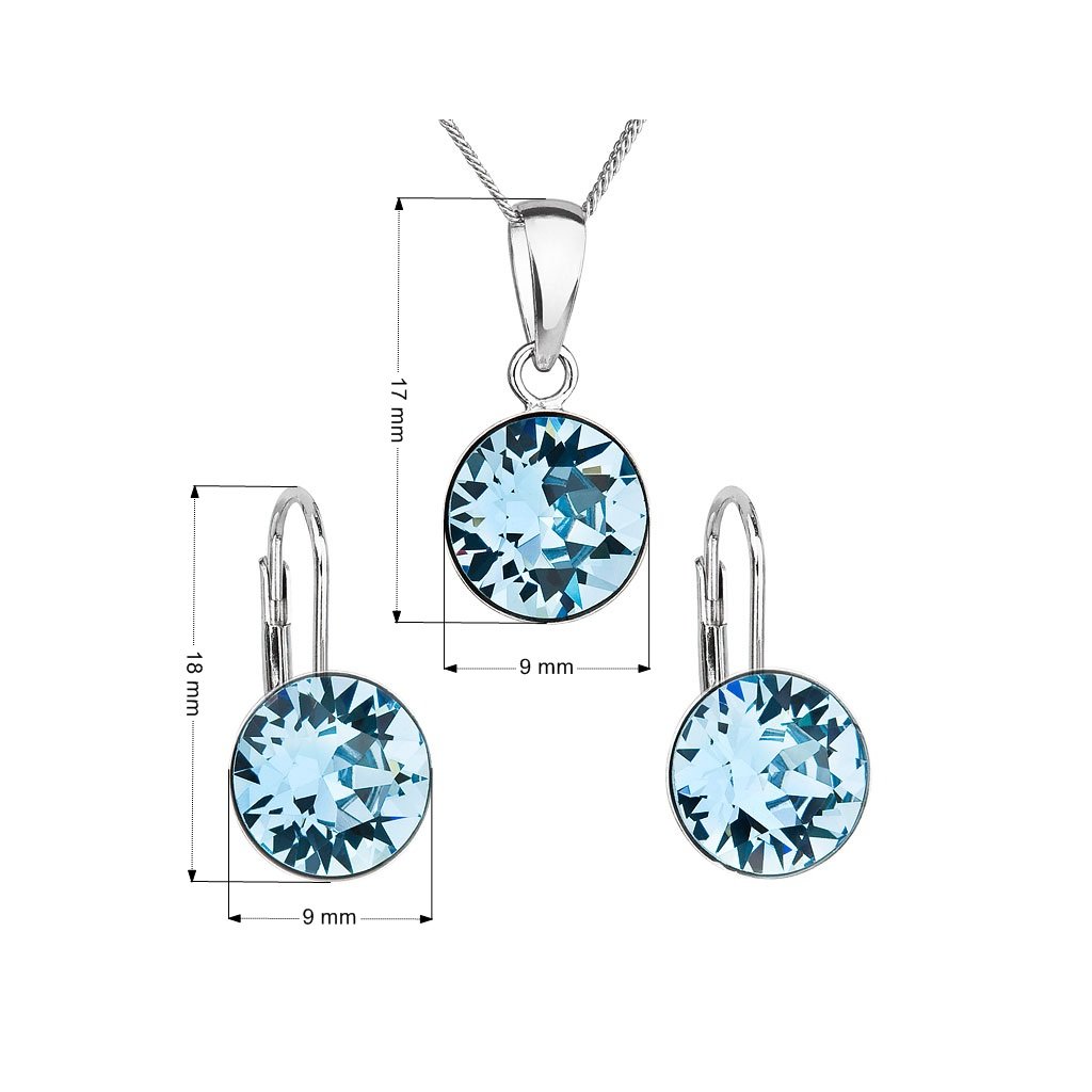 Parametre sady šperkov s kryštálmi Swarovski náušnice a prívesok modré okrúhle 39140.3 aqua
