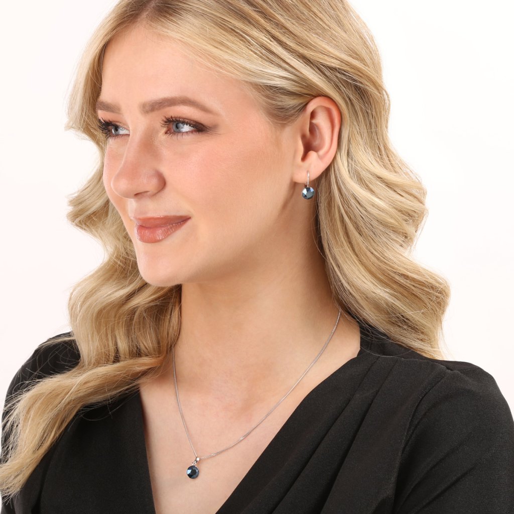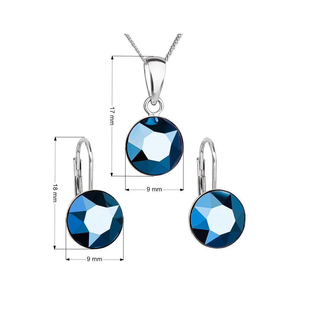 Parametre sady šperkov s kryštálmi Swarovski náušnice a prívesok modré okrúhle 39140.5 metalic blue