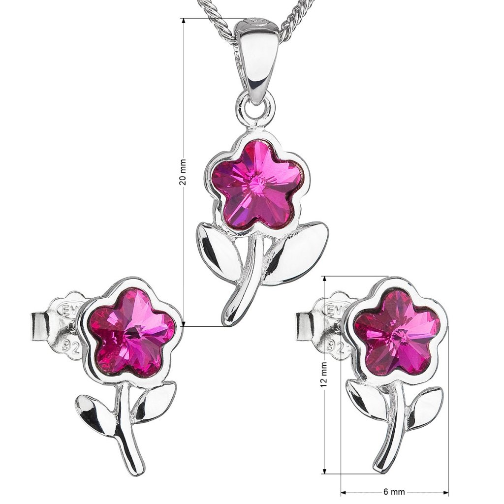 Sada šperkov s kryštálmi Swarovski náušnice, retiazka a prívesok ružová kvietka 39172.3 fuchsia
