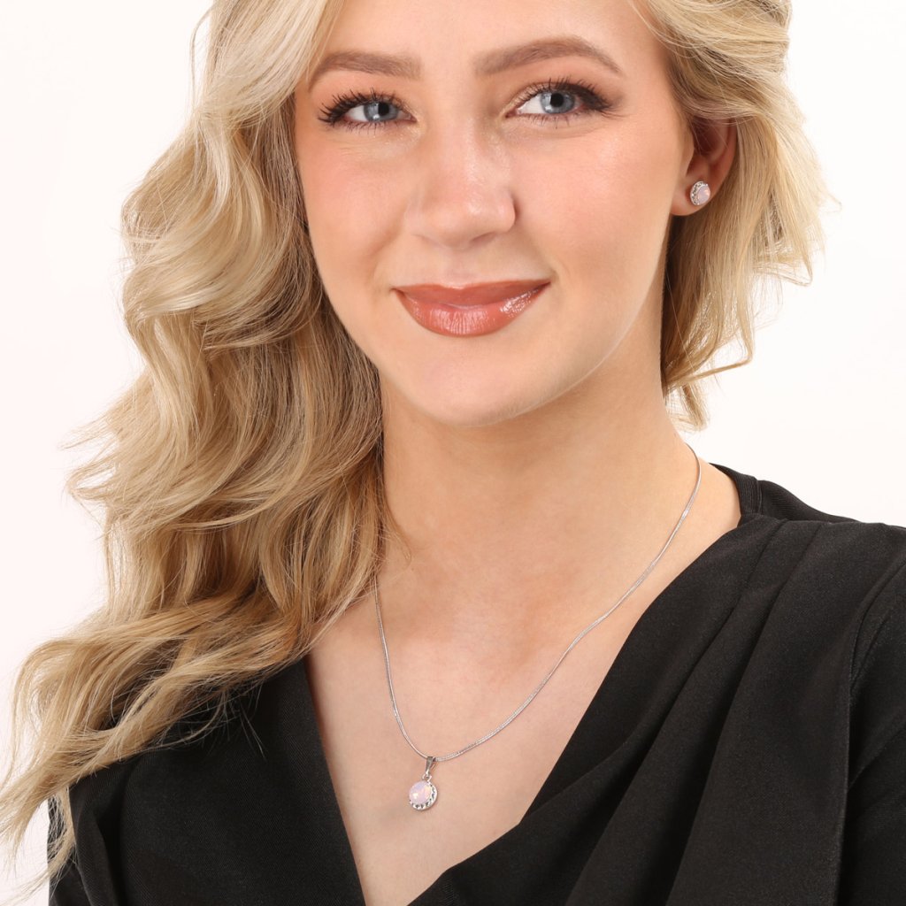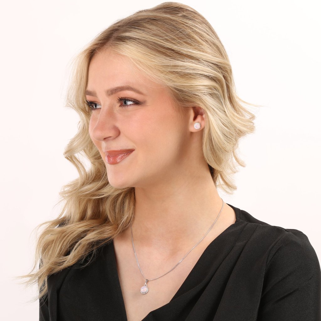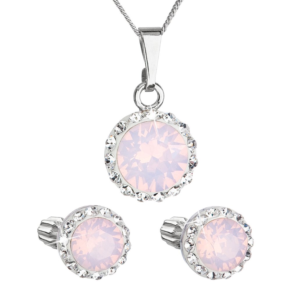 Parametre sady šperkov s kryštálmi Swarovski náušnice a prívesok ružové opálové okrúhle 39352.7