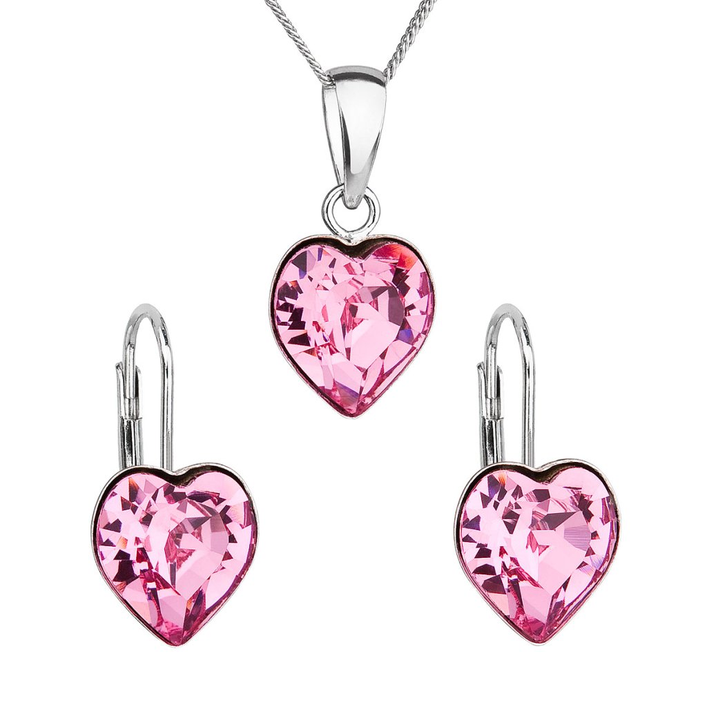 Sada šperkov s kryštálmi Swarovski náušnice, retiazka a prívesok ružové srdce 39141.3