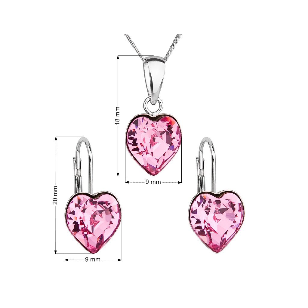 Parametre sady šperkov s kryštálmi Swarovski náušnice, retiazka a prívesok ružové srdce 39141.3