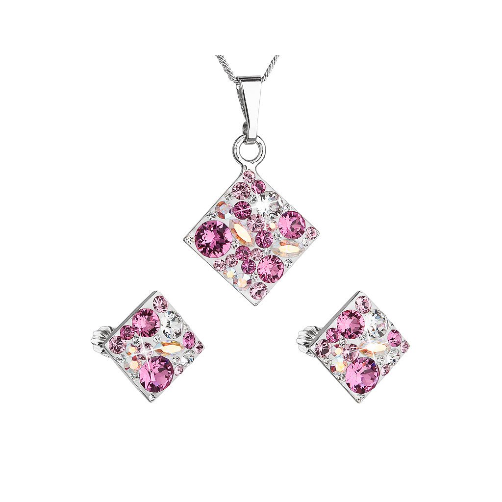 Sada šperkov s kryštálmi Swarovski náušnice, retiazka a prívesok ružový kosoštvorec 39126.3