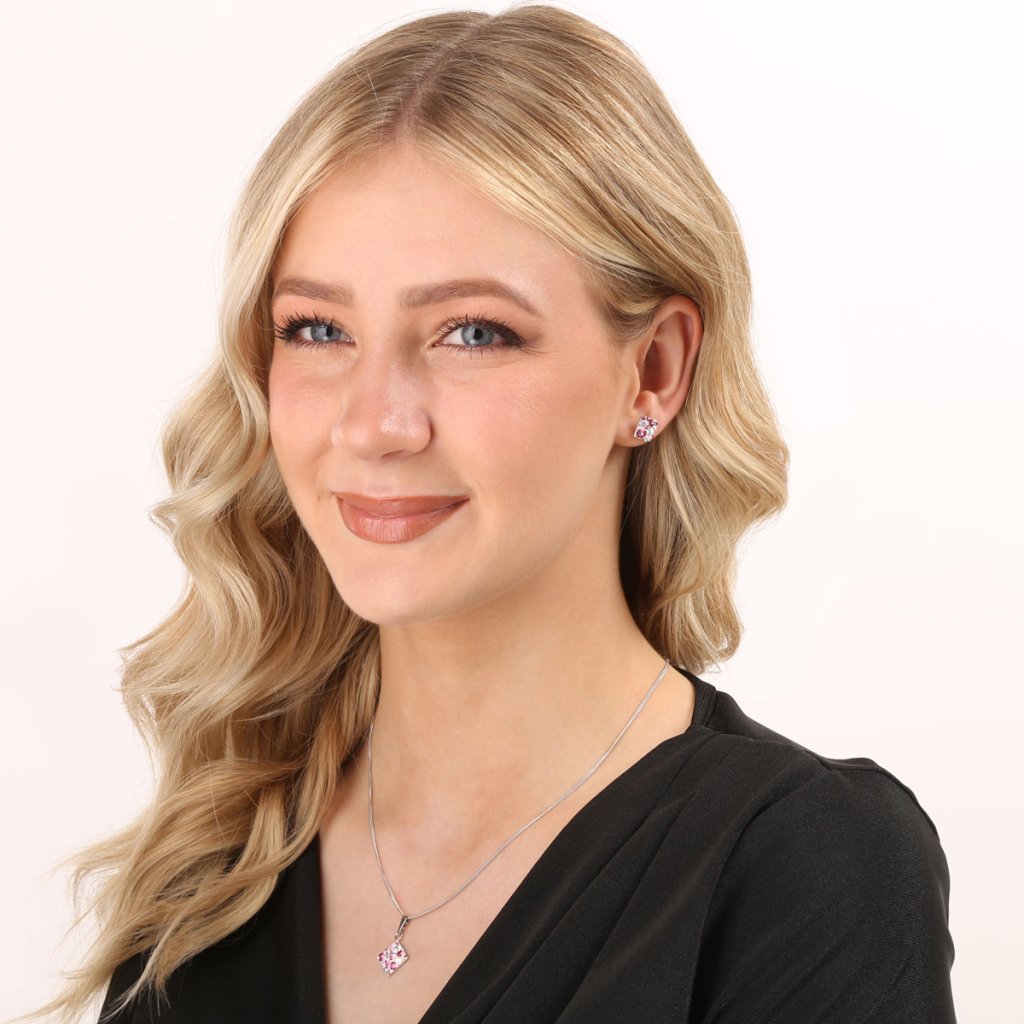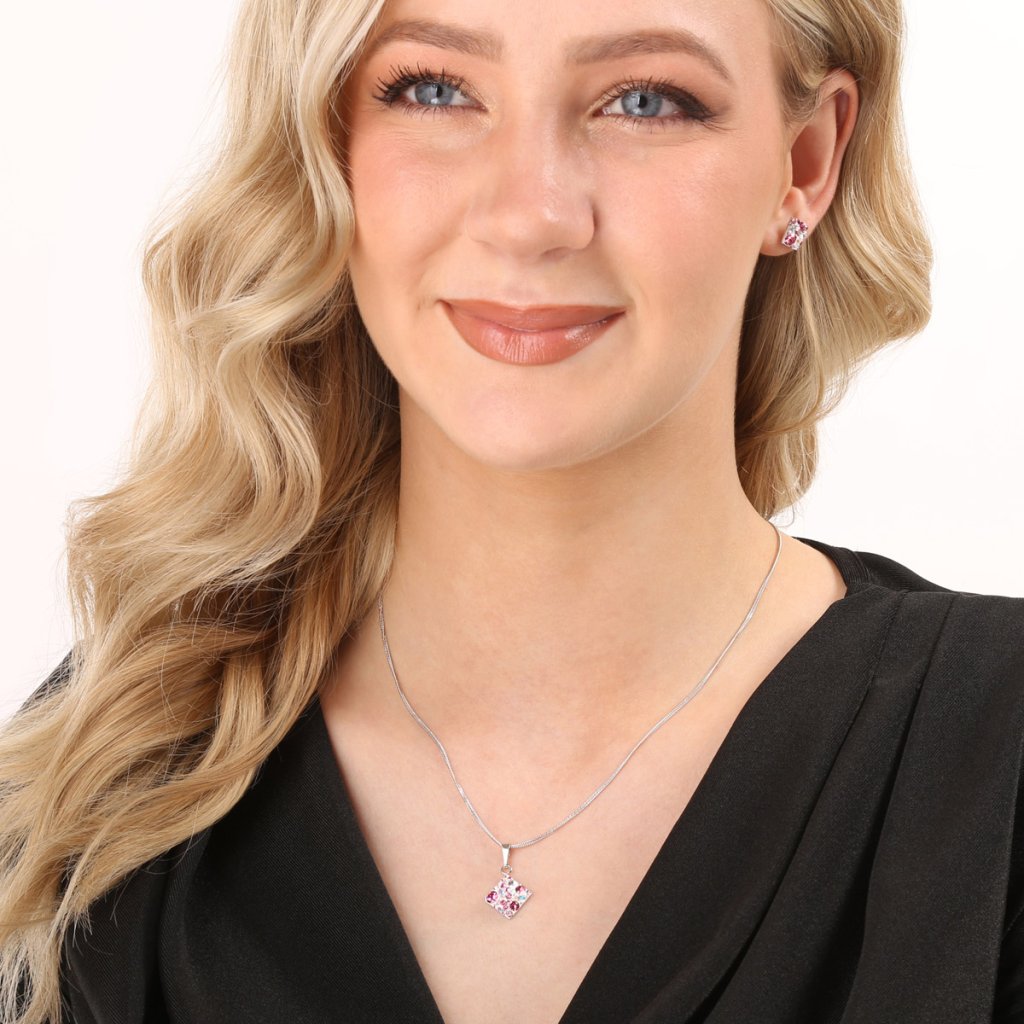 Ak sa zdobíte rada farebnými šperkami, máme pre vás pripravenú sadu, ktorá vás určite zaujme!Ružová sada šperkov 39126.3 obsahuje náušnice kôstky a retiazku s príveskom. Šperky sú v tvare kosoštvorca a sú vyrobené zo striebra rýdzosti 925/1000, ktoré prešlo povrchovou úpravou ródiom. Ródium chráni šperk proti sčerneniu, zožltnutiu i poškriabaniu. Prívesok aj náušnice sú bohato zdobené trblietavými Swarovski kryštálmi v rôznych farbách. Náušnice majú zapínanie na balónik. Keďže šperky neobsahujú žiadny prídavok niklu , môžu ich bez obáv nosiť aj alergici.