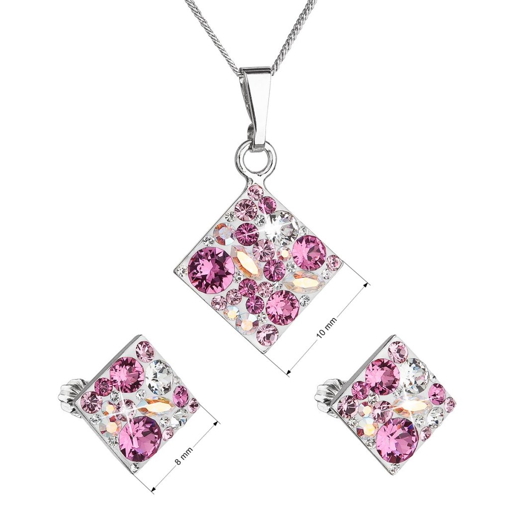 Parametre sady šperkov s kryštálmi Swarovski náušnice, retiazka a prívesok ružový kosoštvorec 39126.3