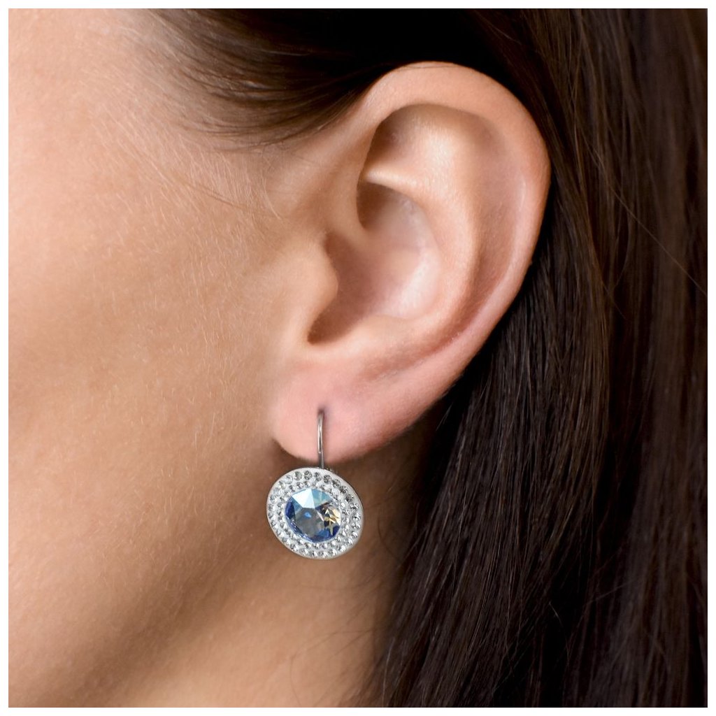 Ozdobte sa nádherne zdobenými visiacimi náušnicami a príveskom v rovnakom dizajne zo súpravy 39107.3.Súprava šperkov 39107.3 obsahuje okrúhle visiace náušnice a prívesok v rovnakej podobe. Šperky sú zdobené veľkým okrúhlym Swarovski kryštálom v modrej farbe, ktorý je navyše lemovaný dvoma radmi menších bielych kryštálov Swarovski. Šperky zo súpravy 39107.3 sú vyrobené zo striebra rýdzosti 925/1000 vrátane povrchovej úpravy ródiom. Ródium chráni šperk proti sčerneniu, zožltnutiu i poškriabaniu. Náušnice majú zapínanie na klapku . Keďže šperky neobsahujú žiadny prídavok niklu , môžu ich bez obáv nosiť aj alergici.