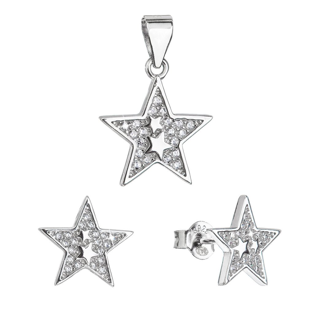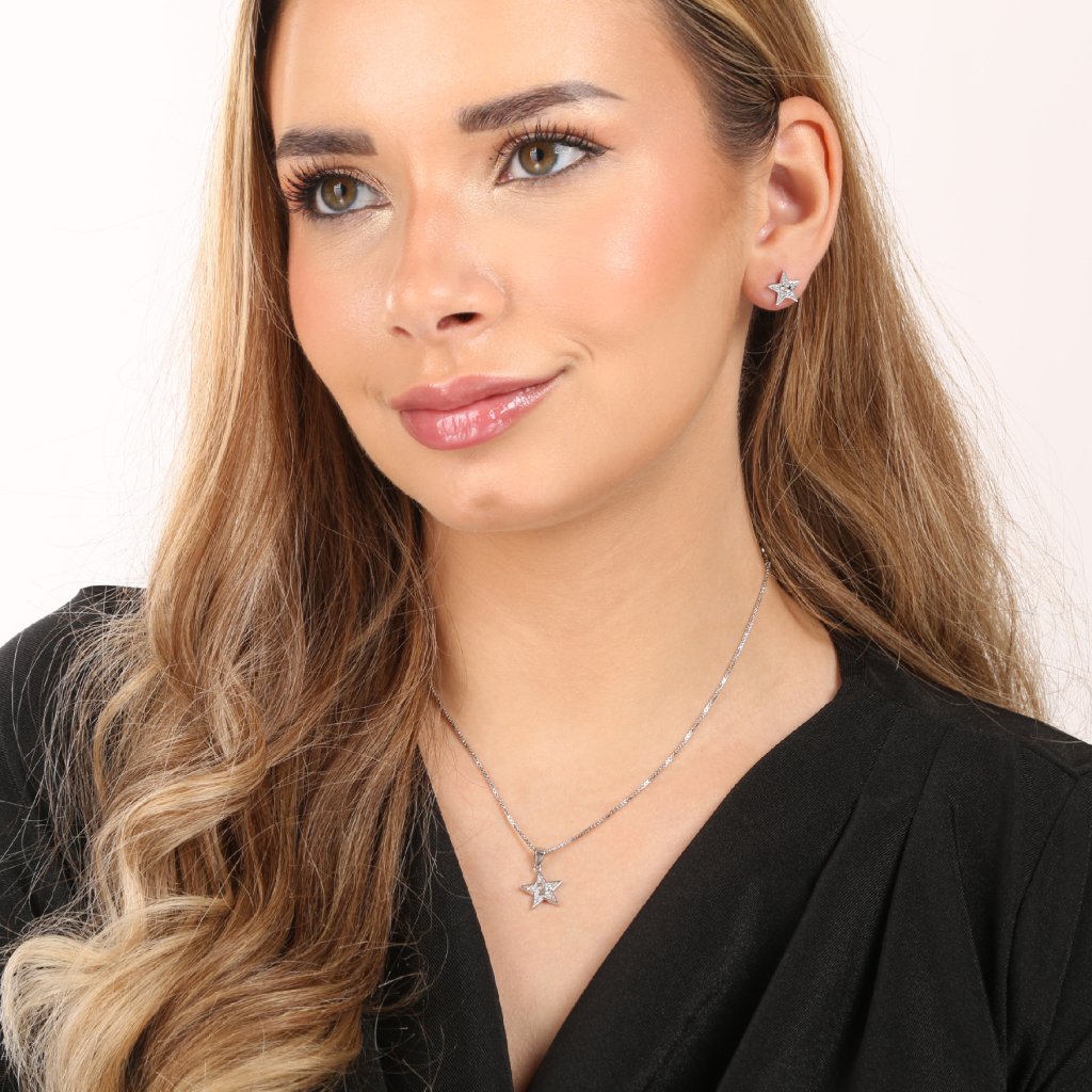 Žiarivé hviezdy na nebi sú fascinujúce, buďte tiež také!Súprava v tvare hviezdičiek je vyrobená zo striebra rýdzosti 925/1000 , ktoré je upravené ródiom. Rhodium šperk chráni proti sčerneniu, zožltnutiu alebo poškriabaniu. Hviezdy sú osadené malými bielymi zirkónmi a uprostred majú dve lesklé hviezdičky.