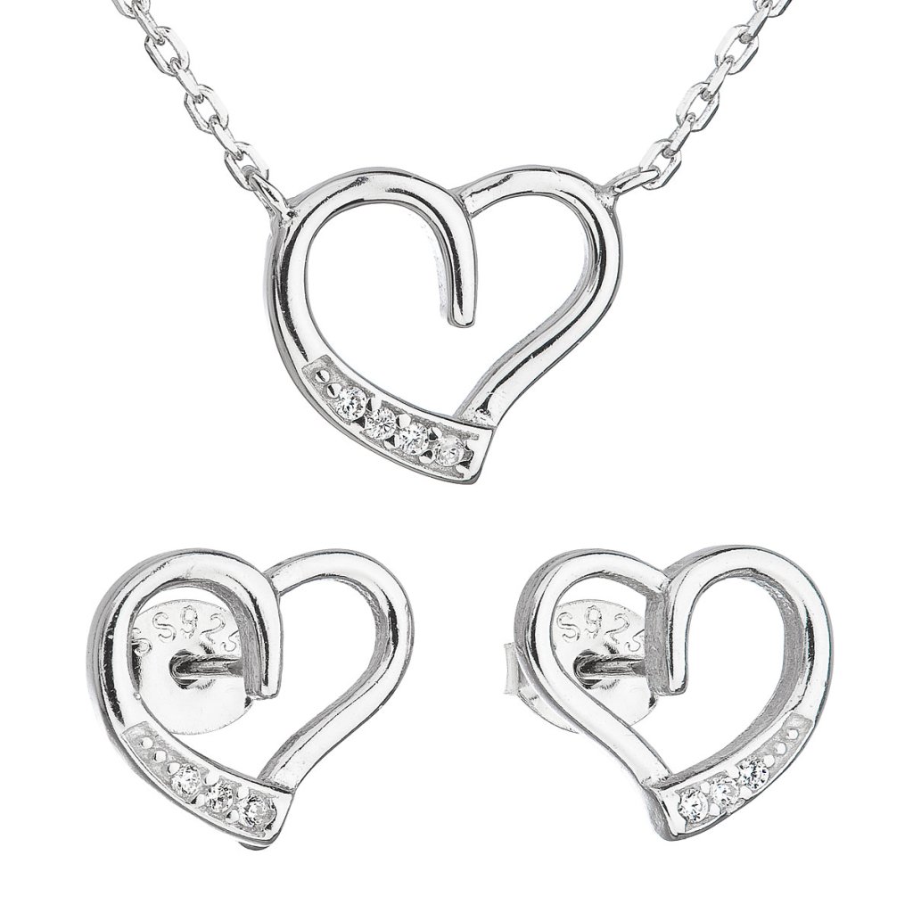 Sada šperkov so zirkónom náušnice a náhrdelník biele srdce 19009.1