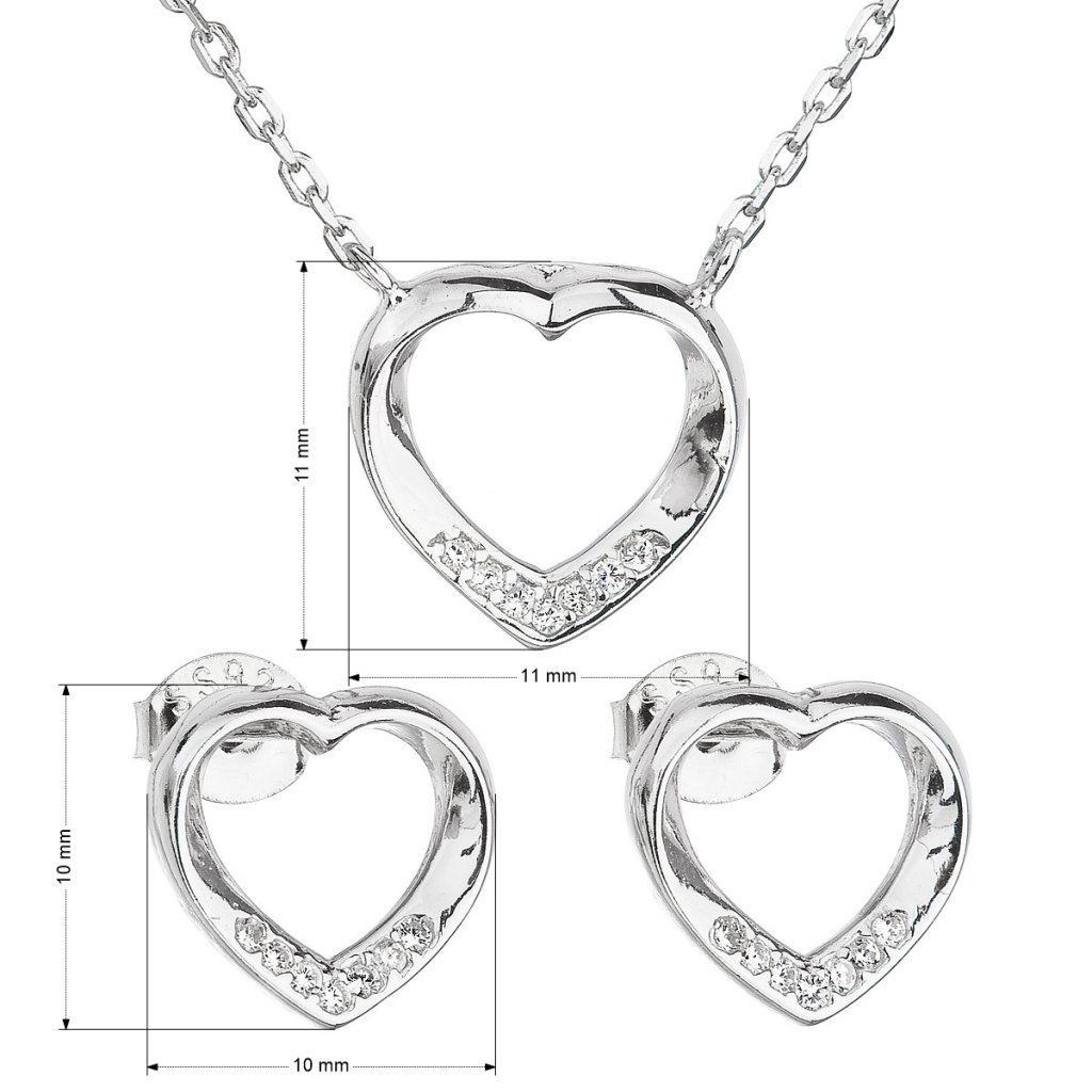 Sada šperkov so zirkónom náušnice a náhrdelník biele srdce 19019.1