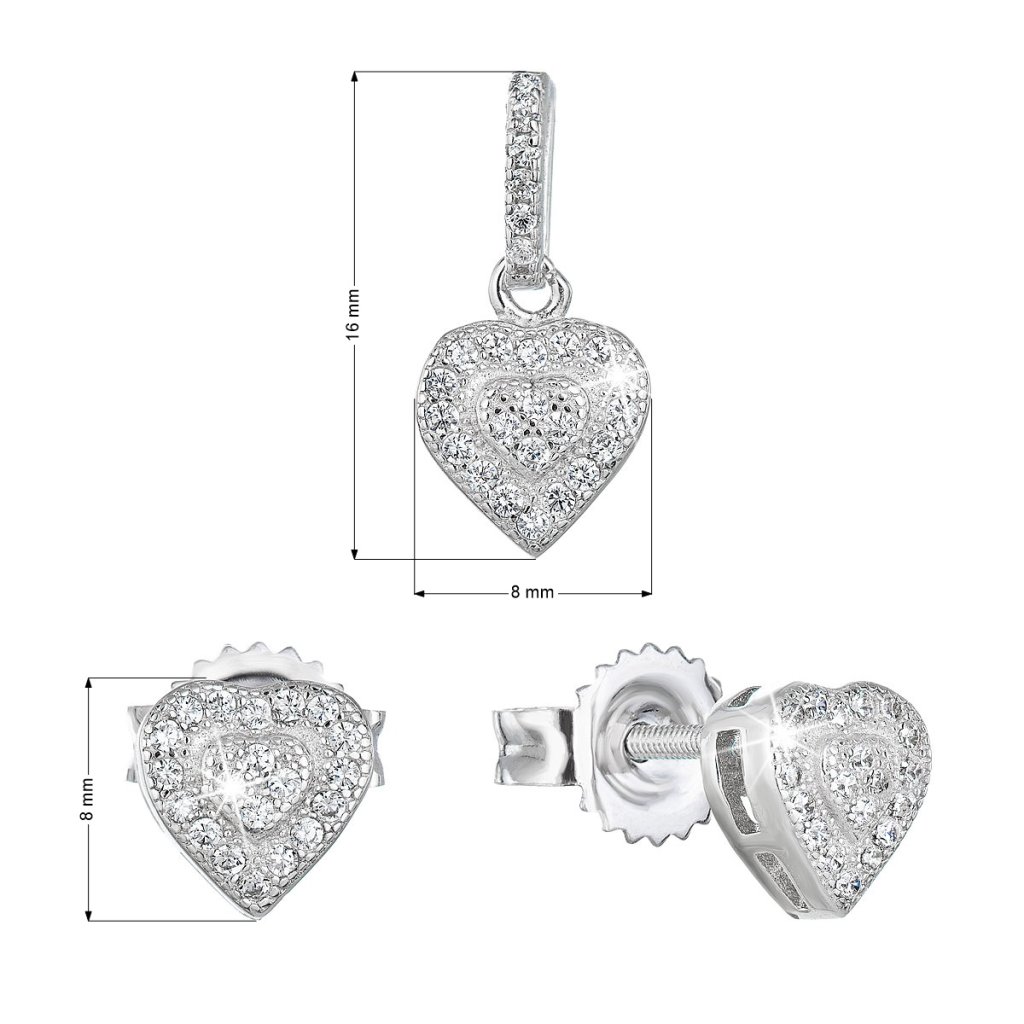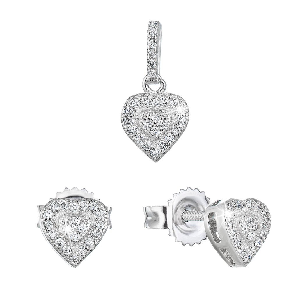 Sada šperkov so zirkónom náušnice a prívesok biele srdce 19027.1