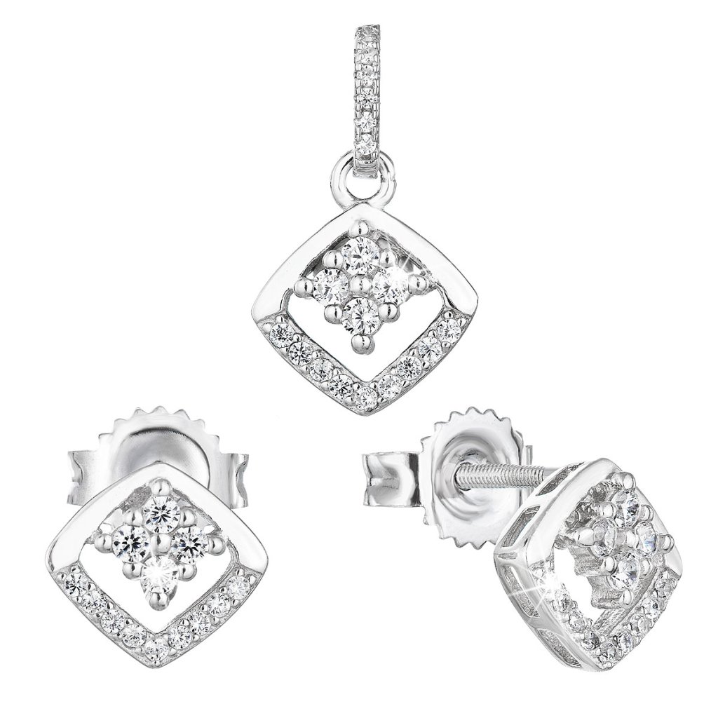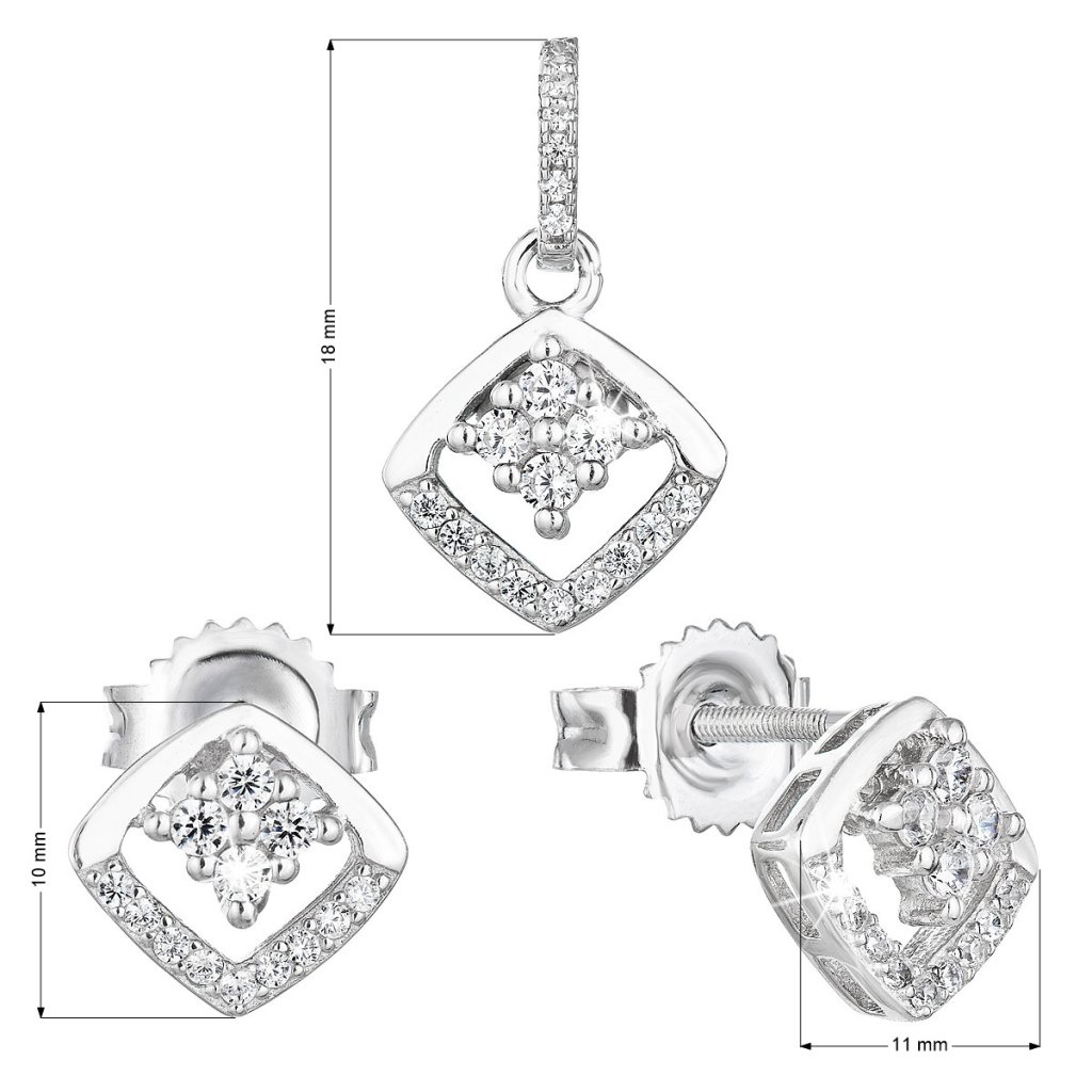 Sada šperkov so zirkónom náušnice a prívesok biely kosoštvorec 19025.1