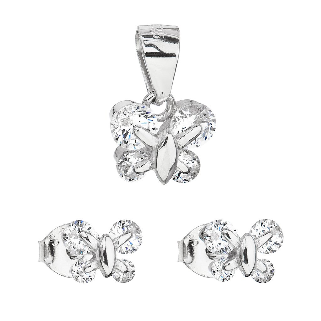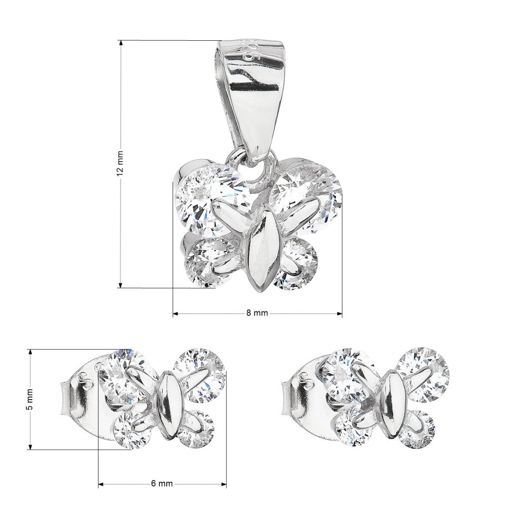 Sada šperkov so zirkónom náušnice a prívesok biely motýľ 19005.1