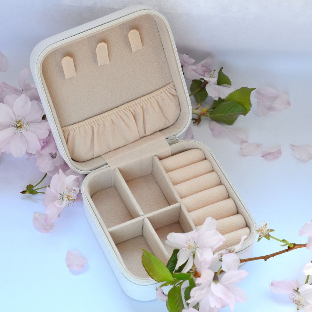 Šperkovnica v tvare štvorca biela so štruktúrovaným povrchom je ideálna na uloženie vašich obľúbených šperkov doma aj na cestách.