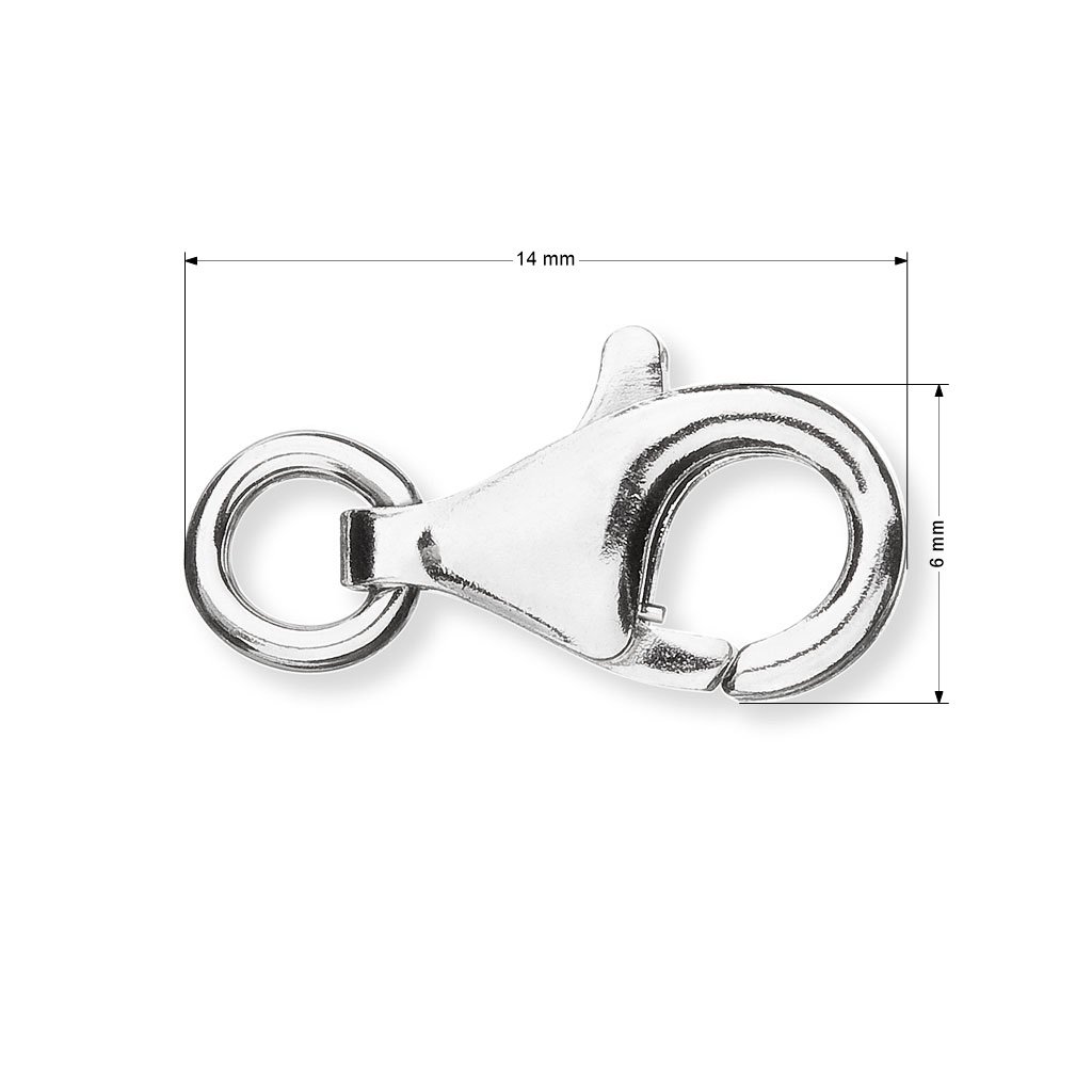 Karabína z rhodiovaného striebra o rýdzosti 925/1000.