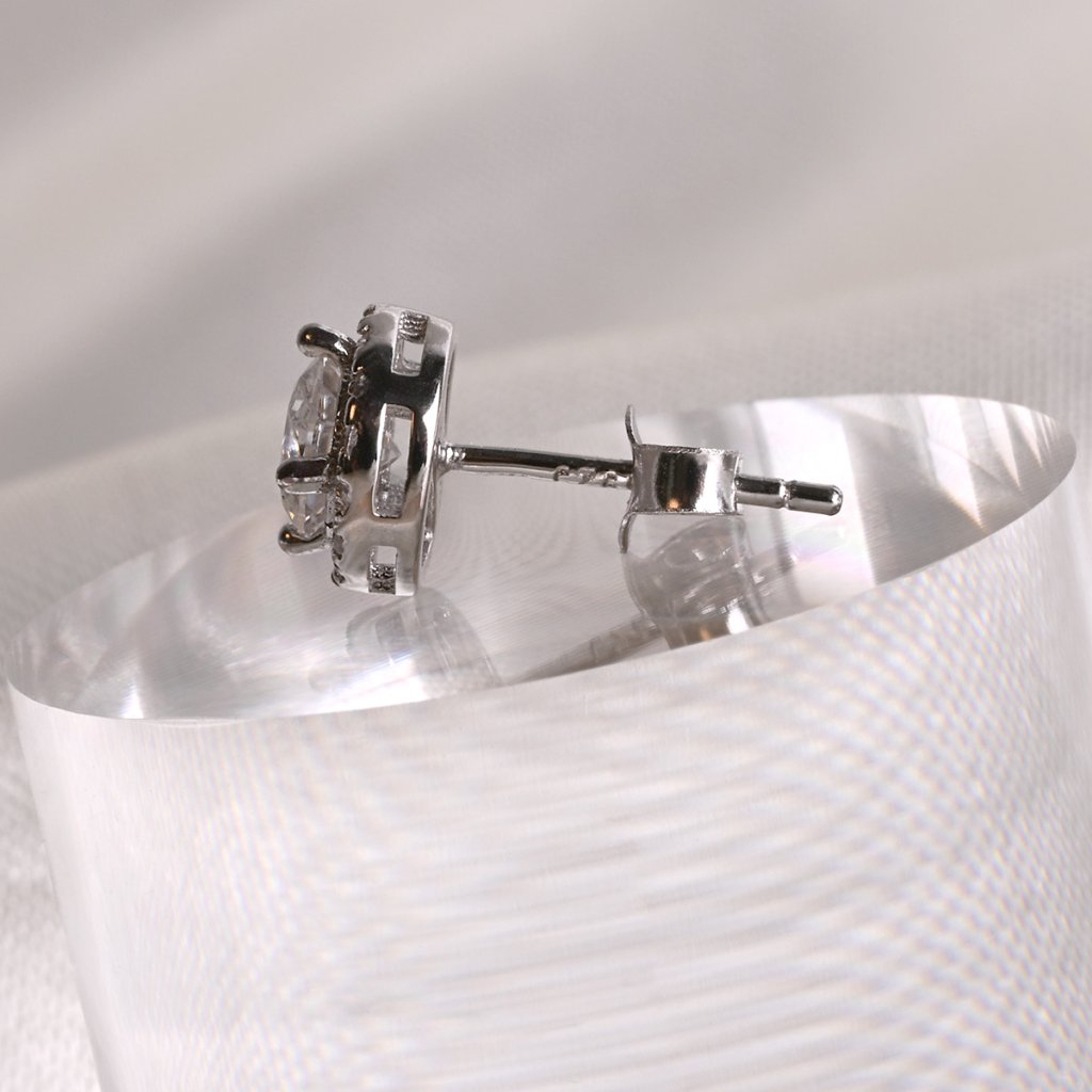Kusové náušnice typu pecka sa žiarivým moissanitom je zo striebra rýdzosti 925/1000 . Povrch striebra je ošetrený vrstvou bieleho 18 kt. zlata, ktorá náušnicu chráni proti sčerneniu, zožltnutiu i poškriabaniu. Bezpečné zapínanie na puzete zaručuje pohodlie od rána do večera.