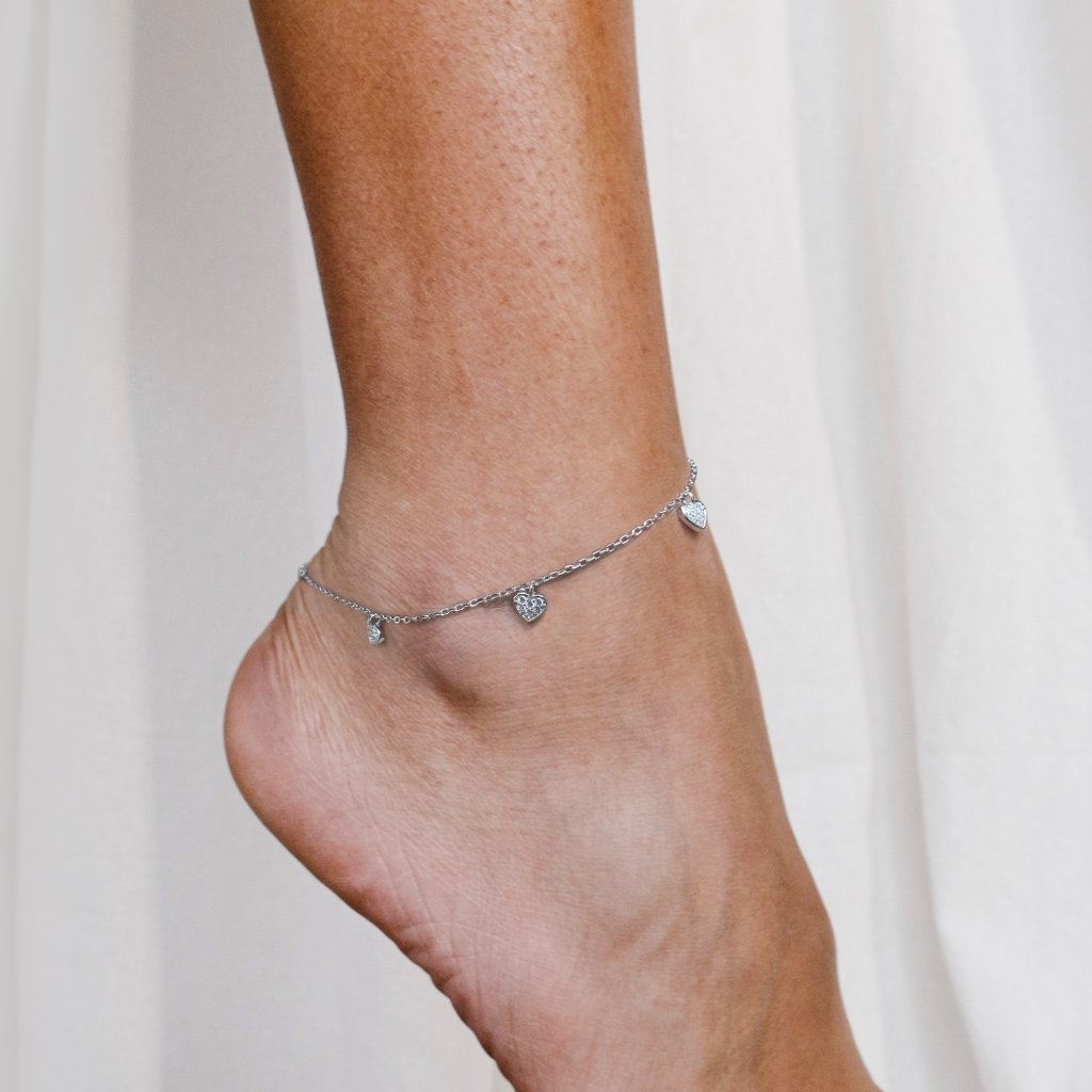 - retiazka na nohu so srdiečkami a zirkónmi