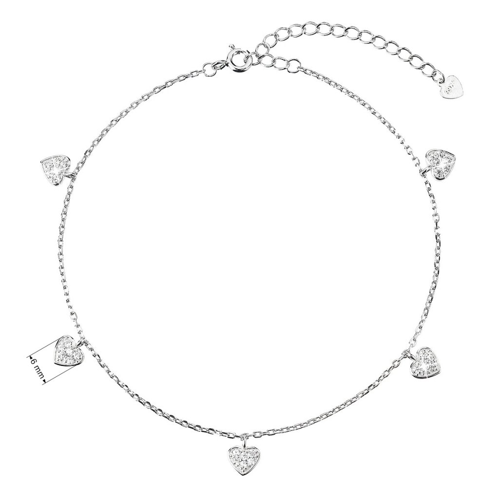Strieborná retiazka na nohu pre dokonalý vzhľad vašich nôh 16004.1, po obvode zdobená srdiečkami so zirkónmi je v letných mesiacoch ideálny doplnok, ktorý každú ženu určite poteší. Ale môžete ho bez obáv využiť aj na plesovú sezónu.