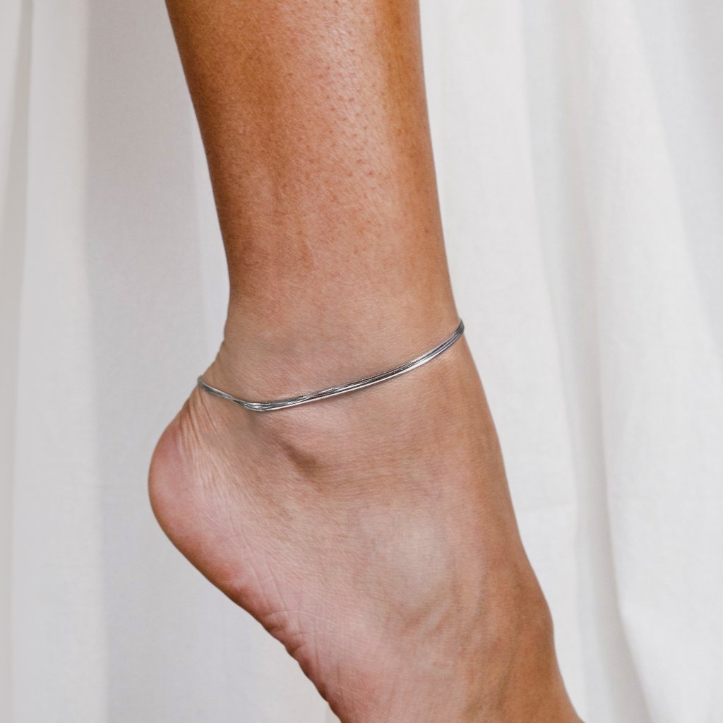 Elegantná strieborná retiazka na nohu v jednoduchom prevedení 16002.1 bez ozdôb, tri retiazky elegantne doplnia aj plesovú róbu.