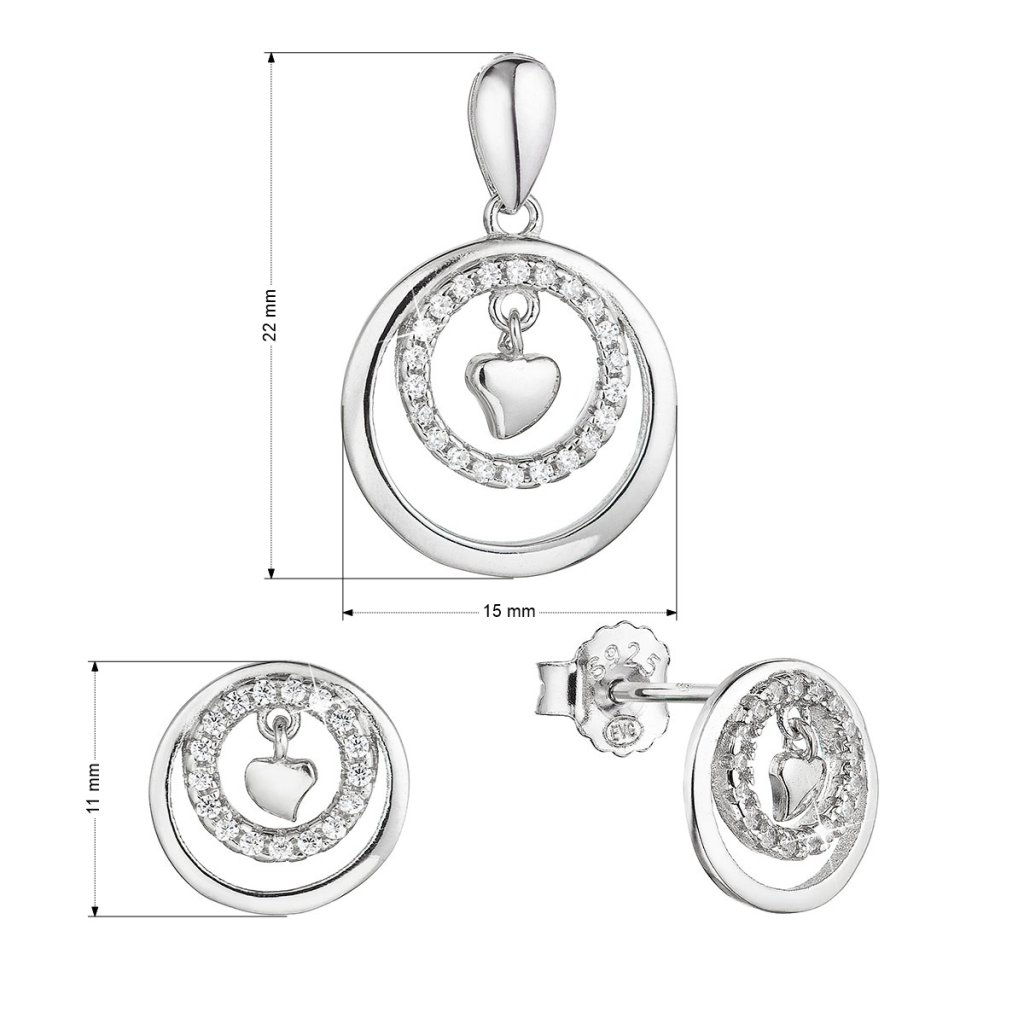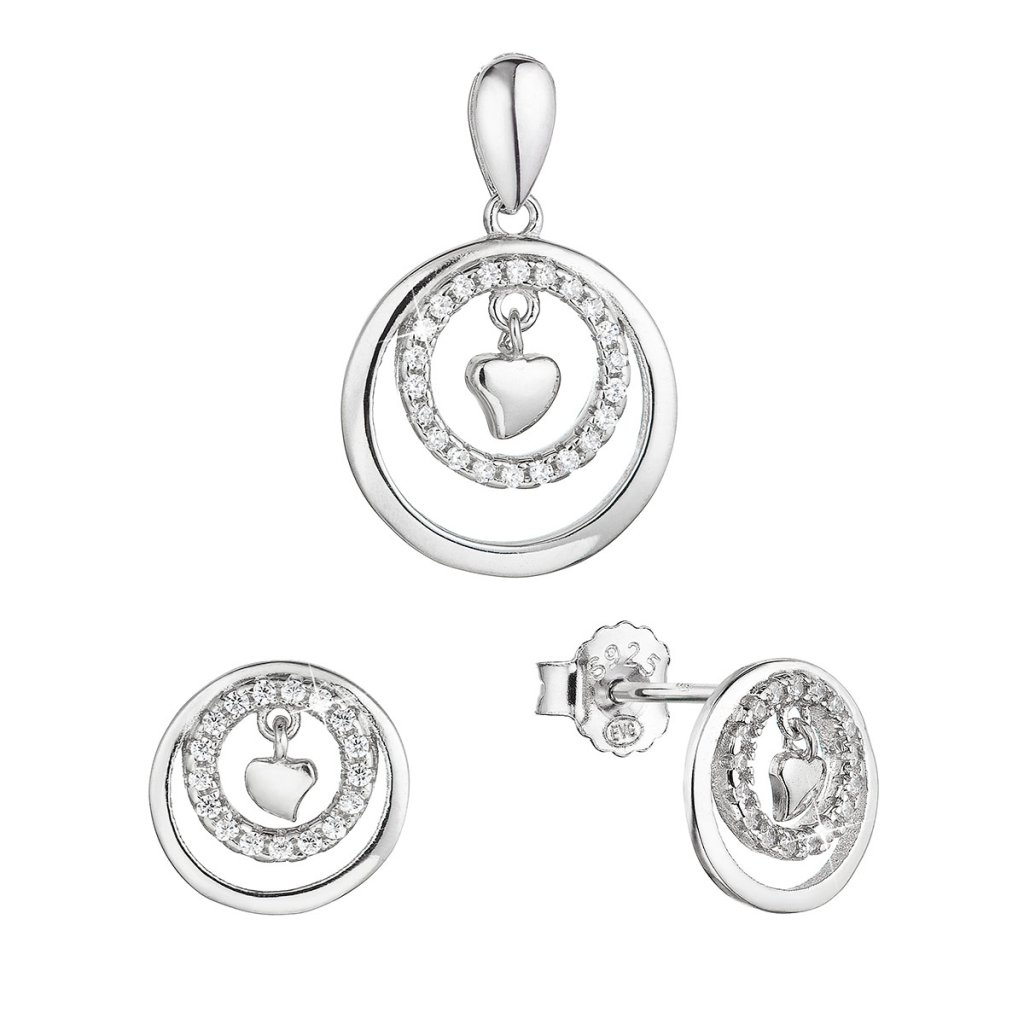Strieborná sada šperkov krúžky so zirkónmi a malé srdiečko uprostred 19034.1