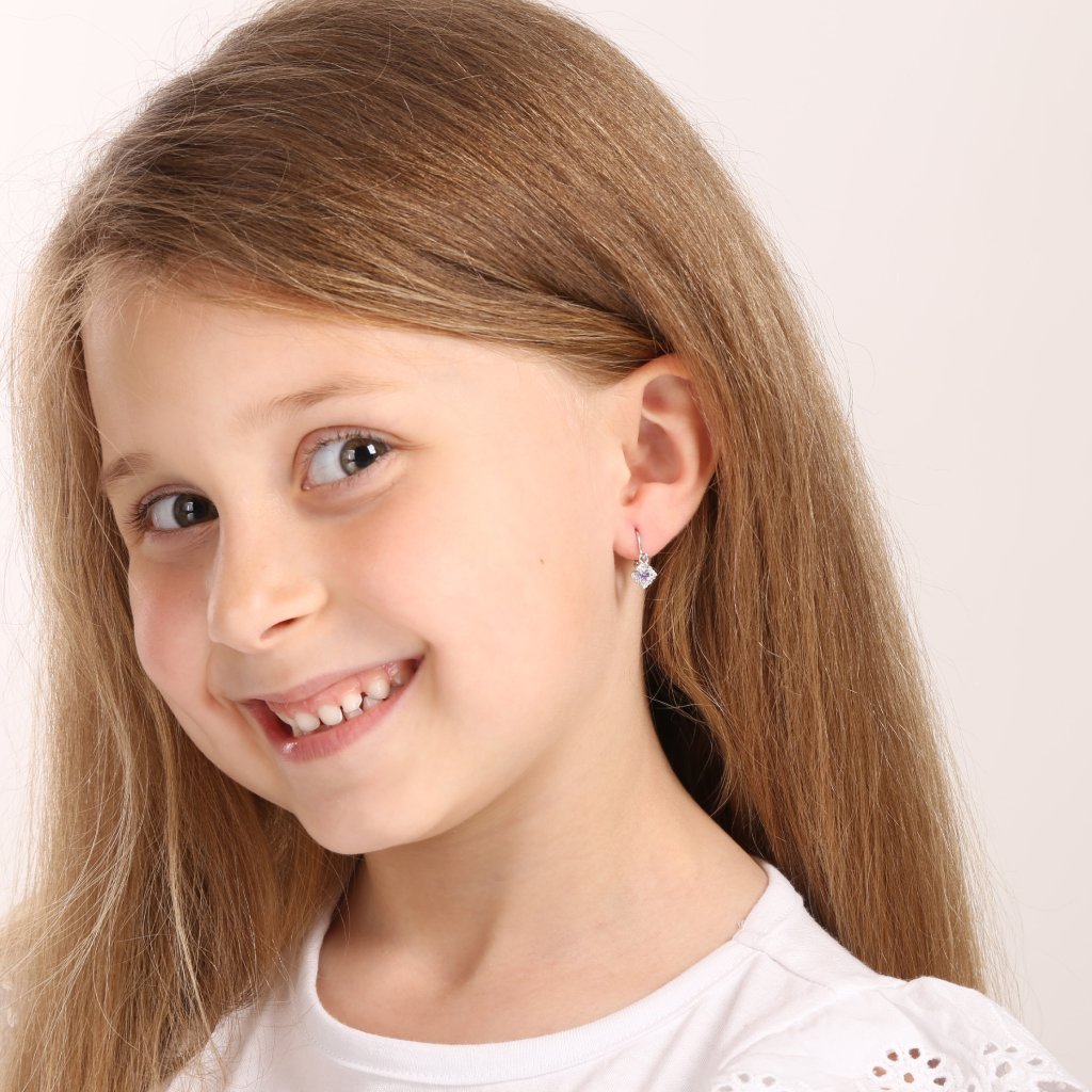 Visiace strieborné náušnice 11175.3 sú vyrobené zo striebra 925/1000 s povrchovou úpravou ródiom, ktorá bráni sčernaniu, zožltnutiu a poškriabaniu šperku. Náušnice s dĺžkou 14 mm majú ľahké zapínanie na brizúru a sú zdobené niekoľkými drobnými zirkónmi. Brizúra je to najvhodnejšie zapínanie pre detské šperky. Šperk neobsahuje nikel , a tak je vhodný pre citlivé osoby aj pre alergikov.