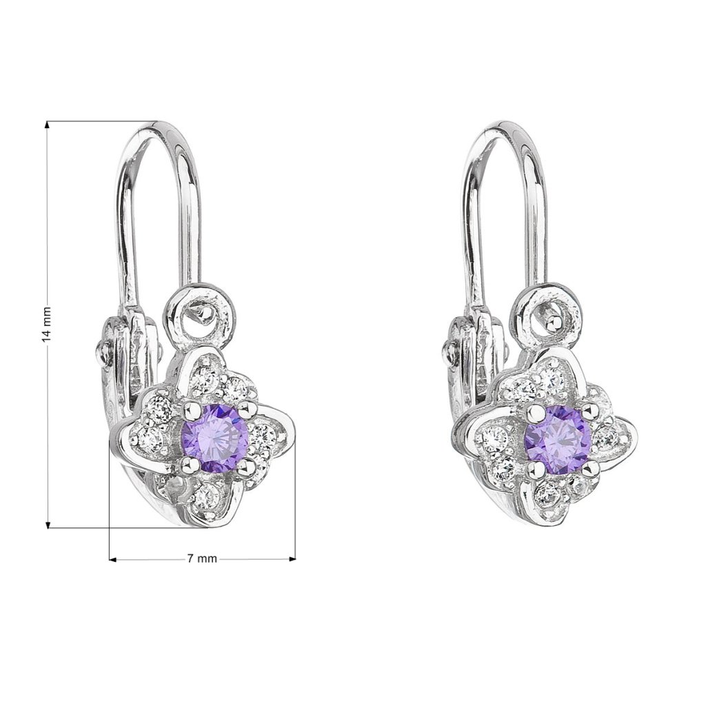 Parametre strieborných detských visiacich náušníc so zirkónom fialová kvietka 11175.3