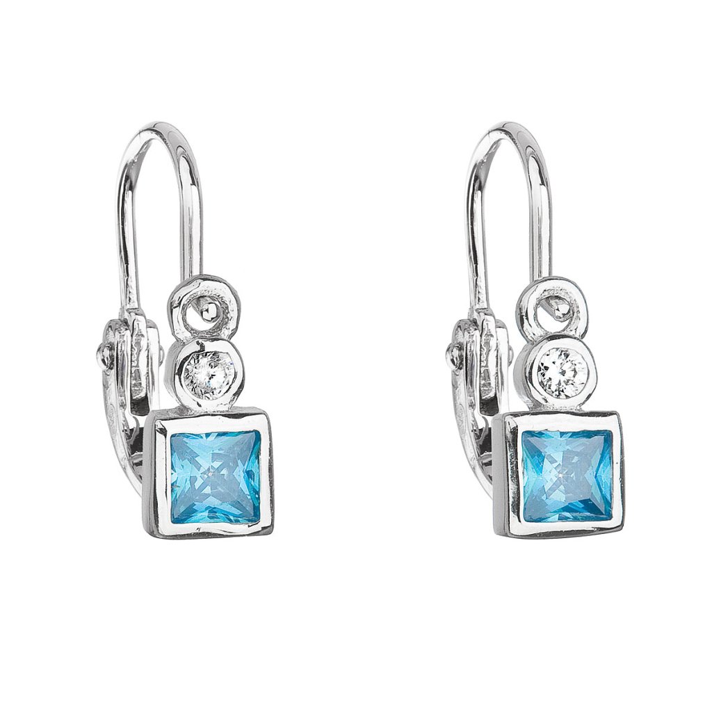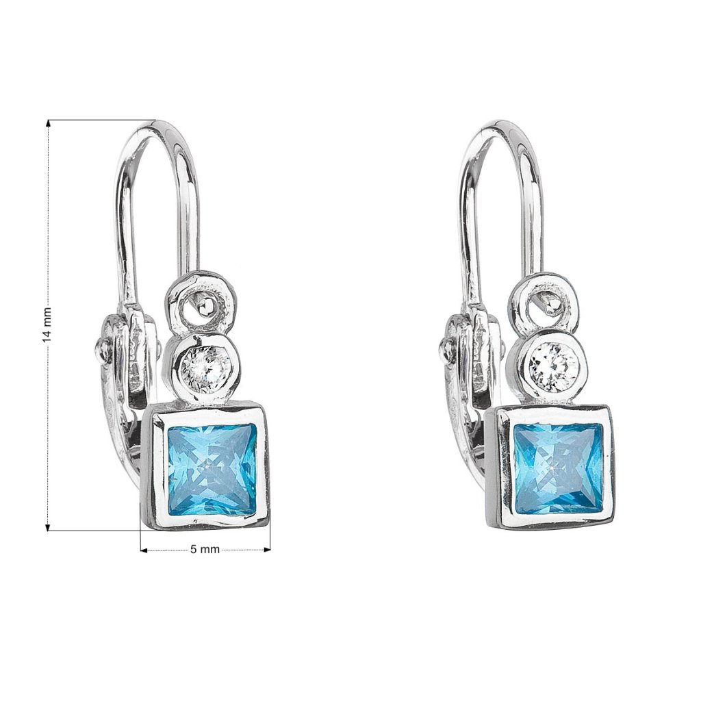 Parametre strieborných detských visiacich náušníc so zirkónom modrá kocka 11172.3