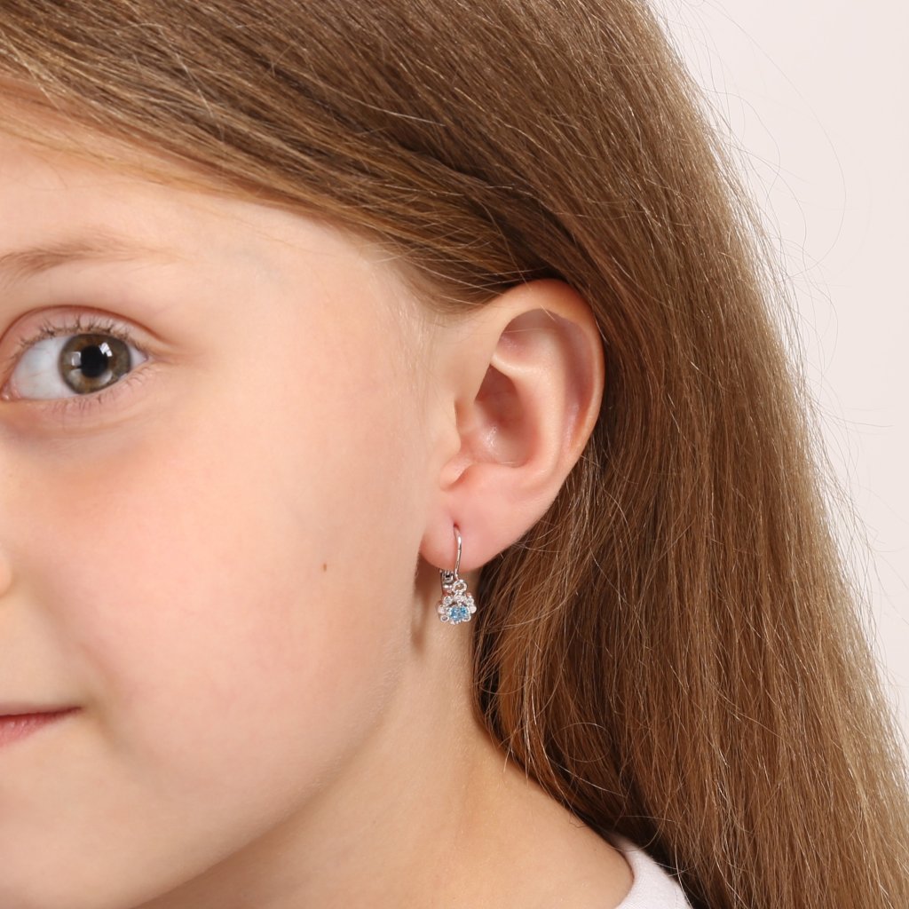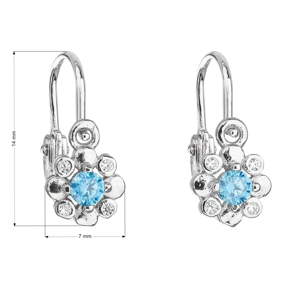 Parametre strieborných detských visiacich náušníc so zirkónom modrá kytička 11174.3