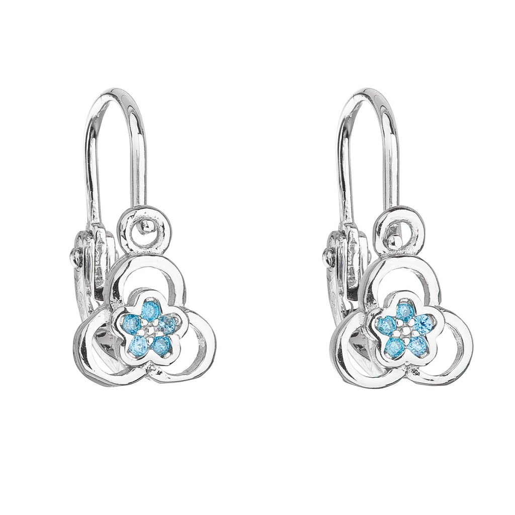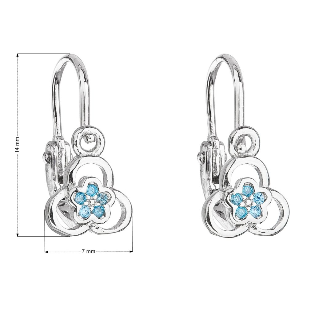 Parametre strieborných detských visiacich náušníc so zirkónom modrá kytička 11171.3