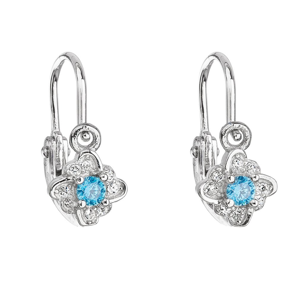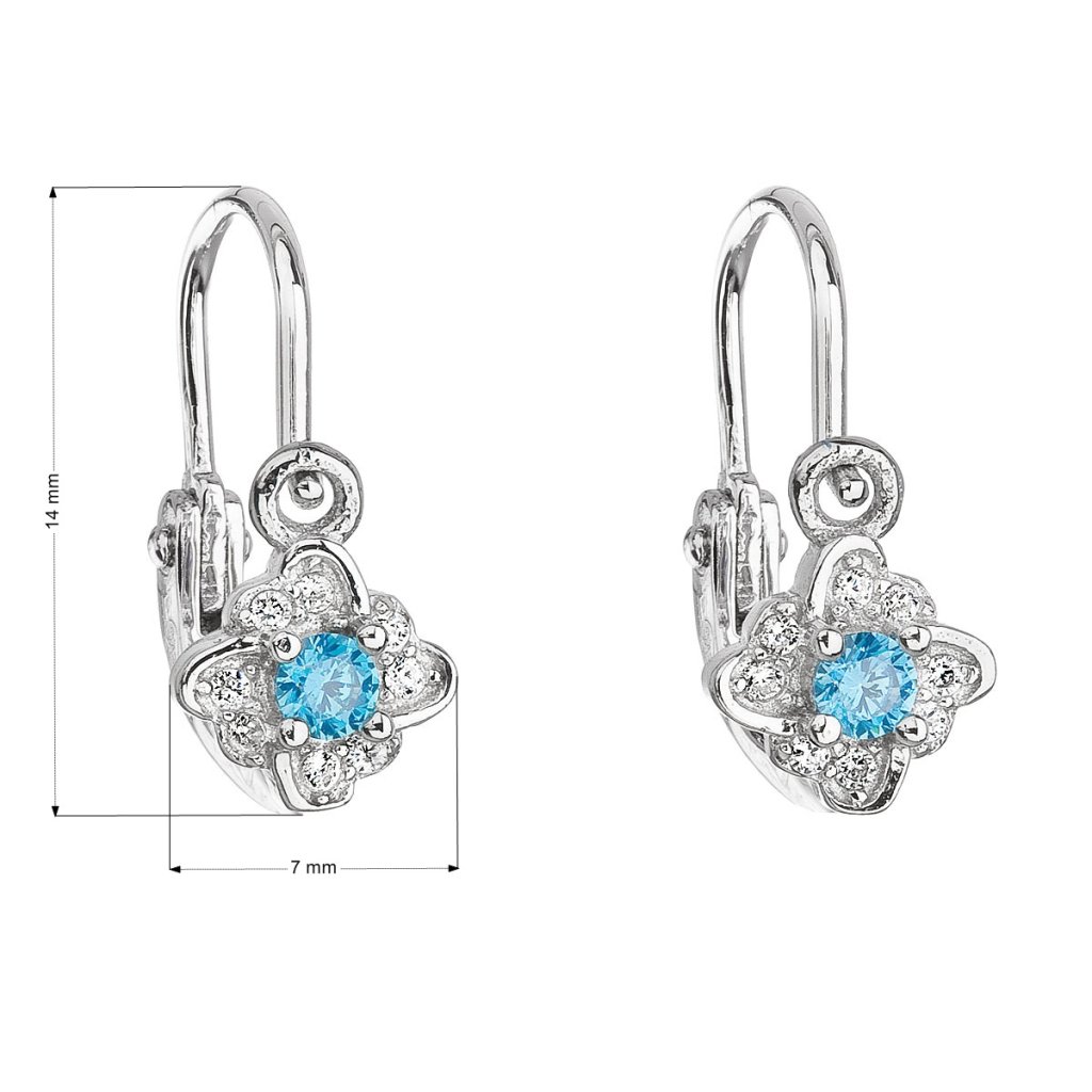 Parametre strieborných detských visiacich náušníc so zirkónom modrá kvietka 11175.3