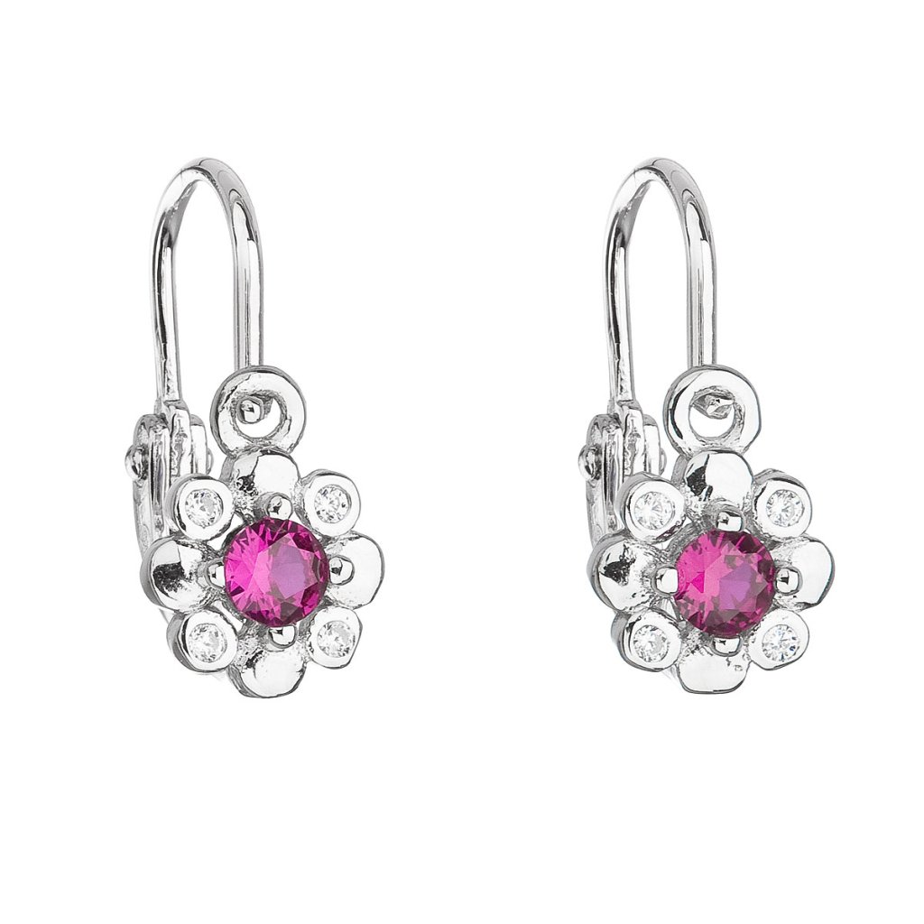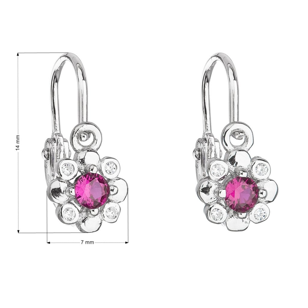 Parametre strieborných detských visiacich náušníc so zirkónom ružová kvietka 11174.3