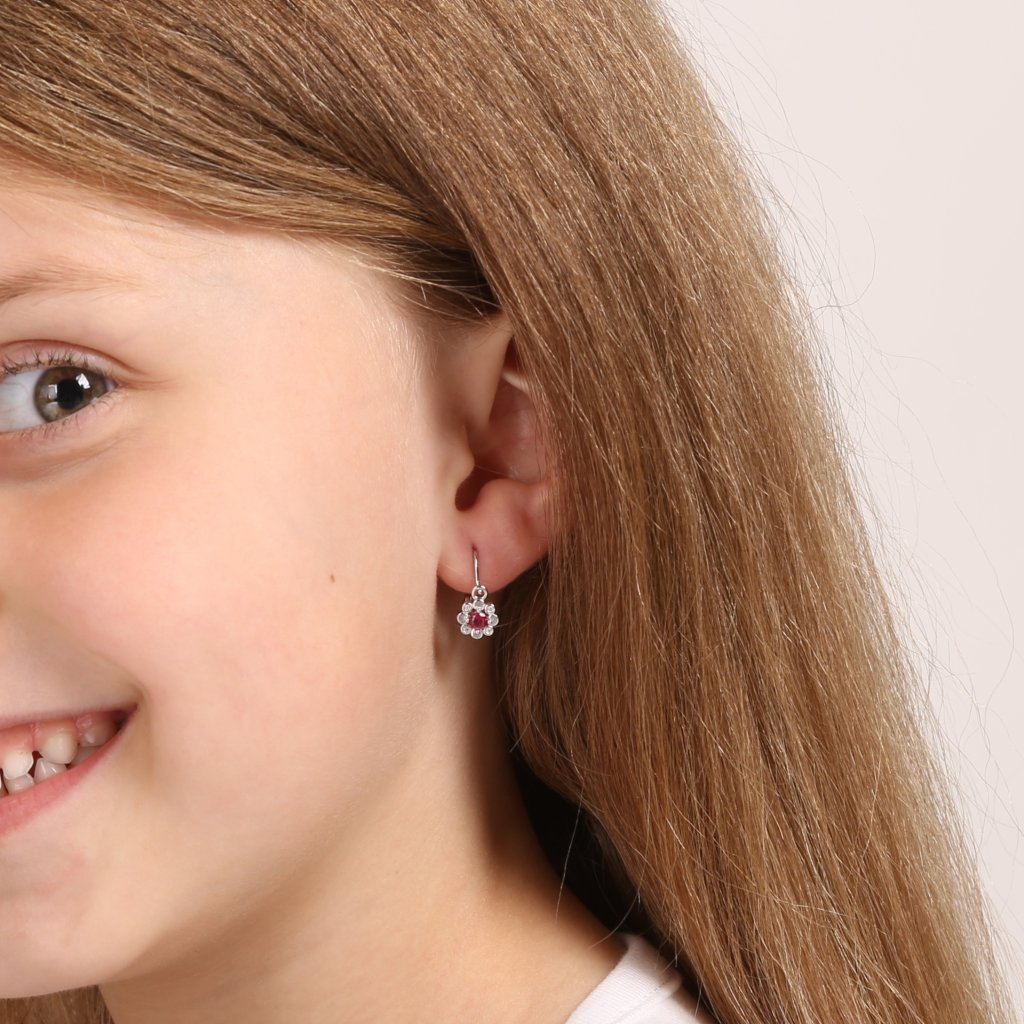 Strieborné náušnice v tvare kvetinky bude vaše malé dievčatko nosiť s radosťou!Visiace náušnice 11174.3 sú vyrobené zo striebra rýdzosti 925/1000, ktorého povrch je upravený ródiom. Rhodium šperk ochráni proti sčernaniu, zožltnutiu alebo poškriabaniu. Náušnice majú dĺžku 14 mm a každá z nich je vysadená celkom 5 drobnými trblietavými zirkónmi v bielej a ružovej farbe. Náušnice sa zapínajú na brizúru. Brizúra je najvhodnejším zapínaním aj pre tie najmenšie deti. Háčik na prednej strane šperku sa zasunie do očka. Kvalitné zapínanie zamedzí nechcenej strate náušnice.