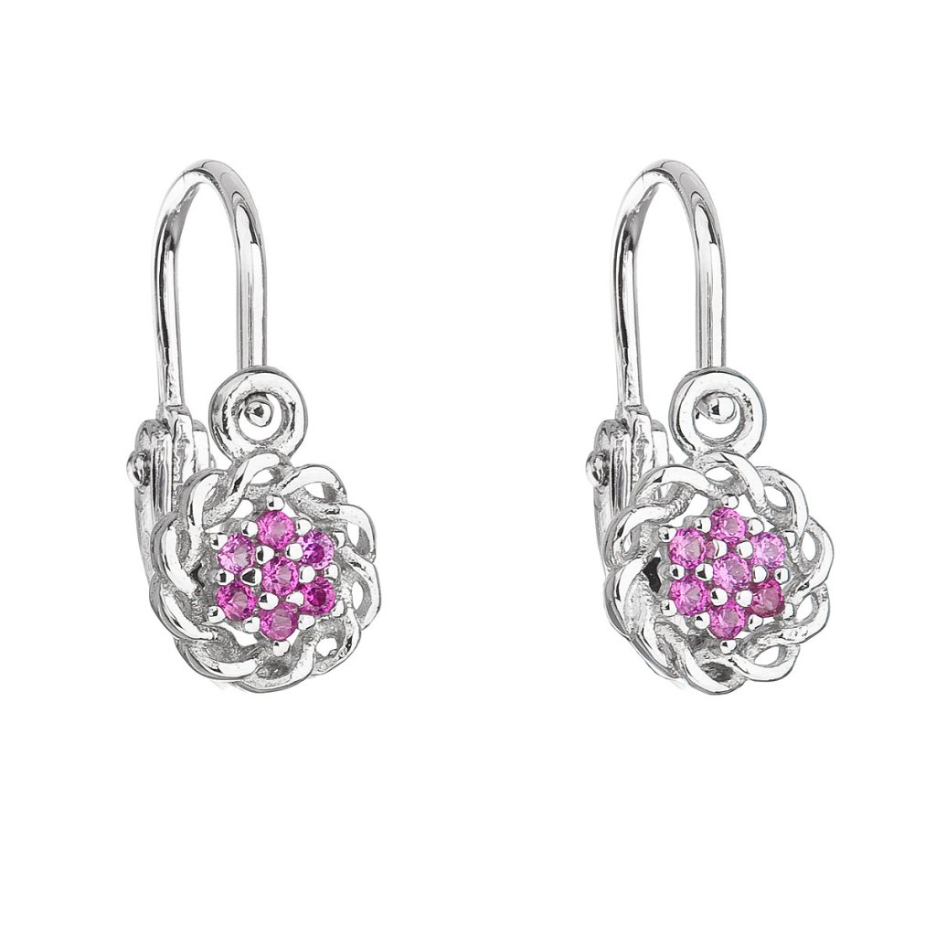 Strieborné detské náušnice visiace so zirkónom ružová kvietka 11176.3