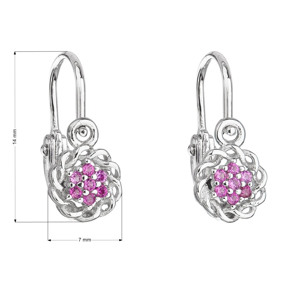 Parametre strieborných detských visiacich náušníc so zirkónom ružová kvietka 11176.3