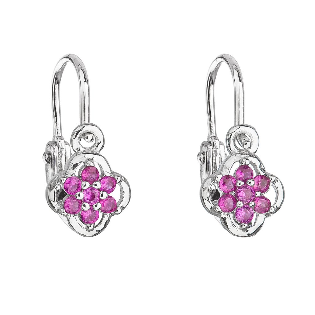 Strieborné detské náušnice visiace so zirkónom ružová kvietka 11177.3